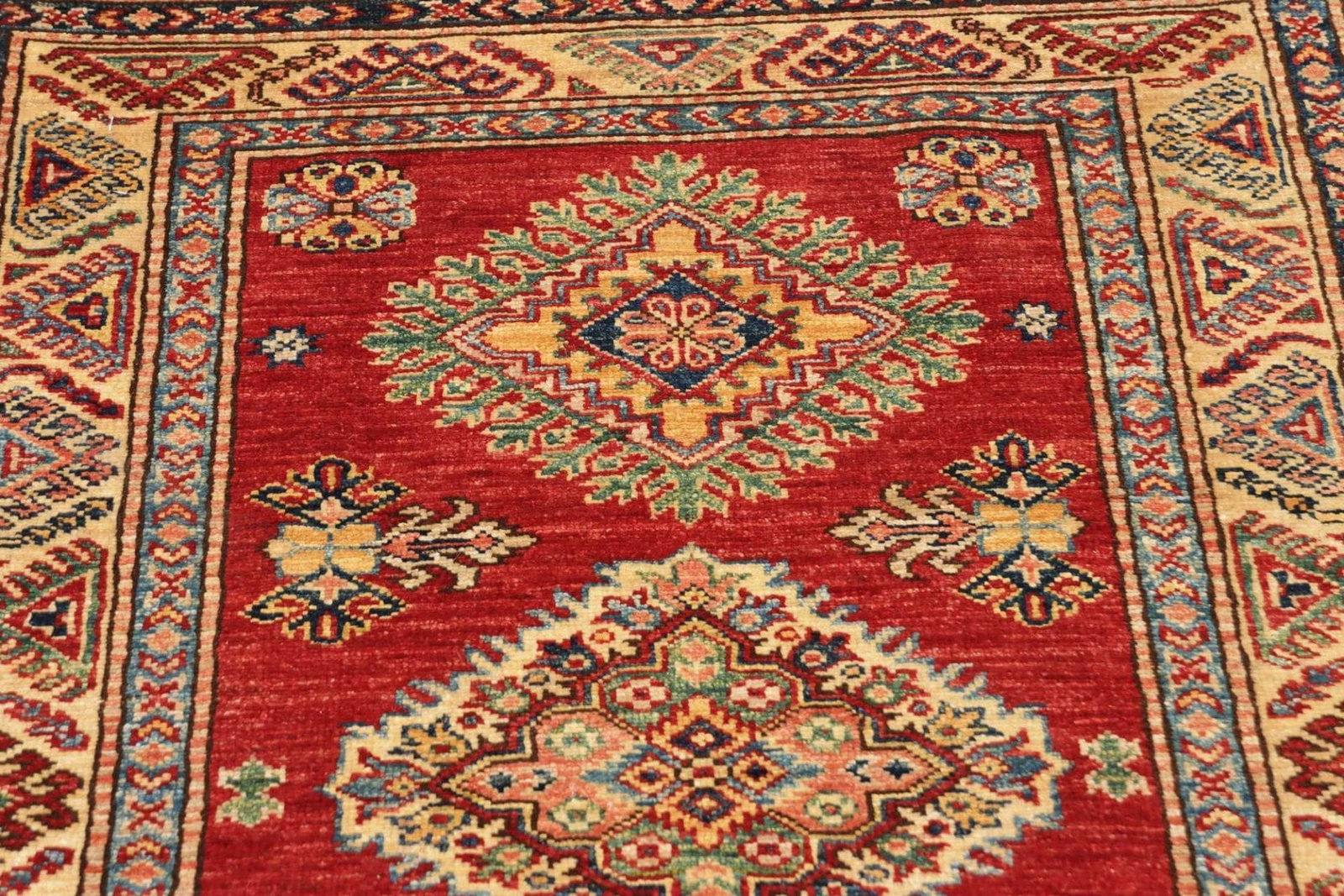 Kazak Teppich 89 x 116 cm, geometrische Muster, handgeknüpft