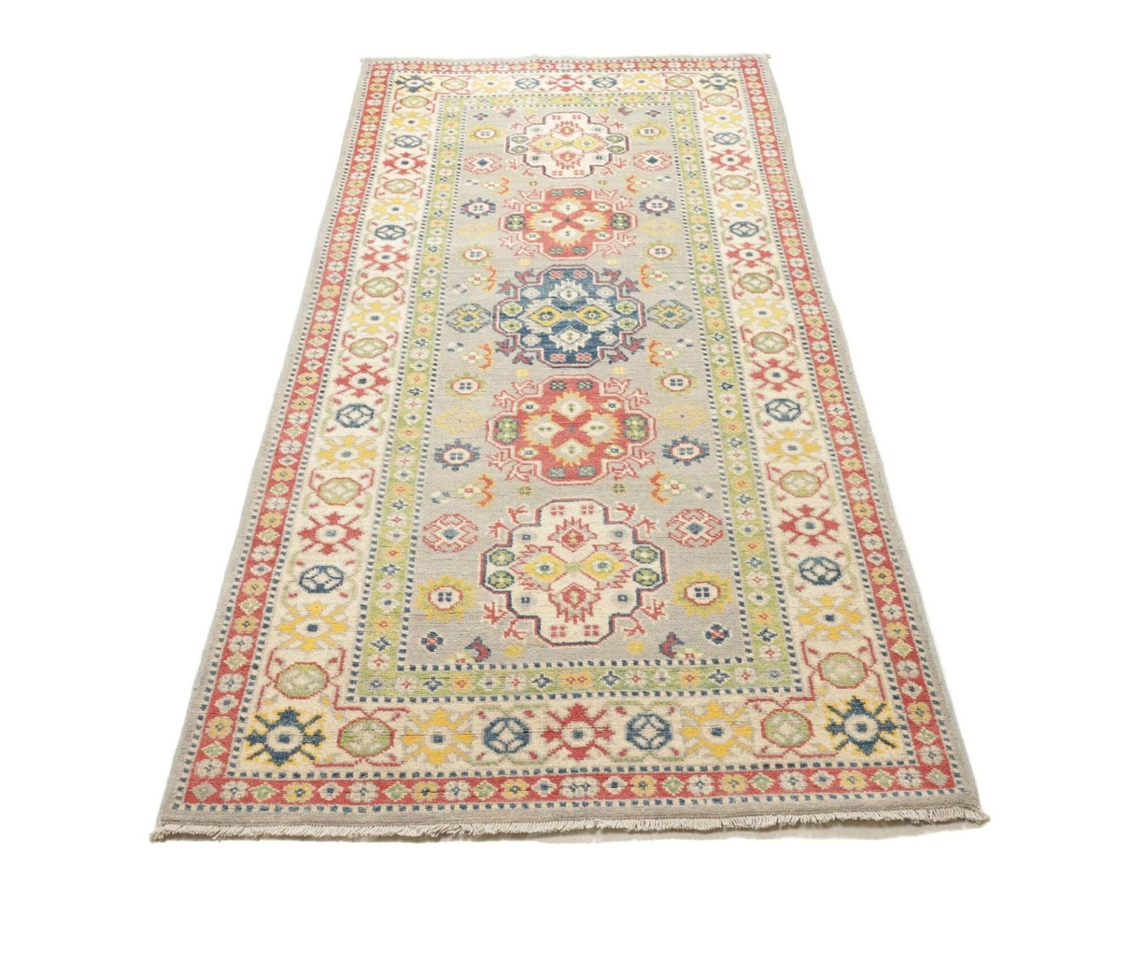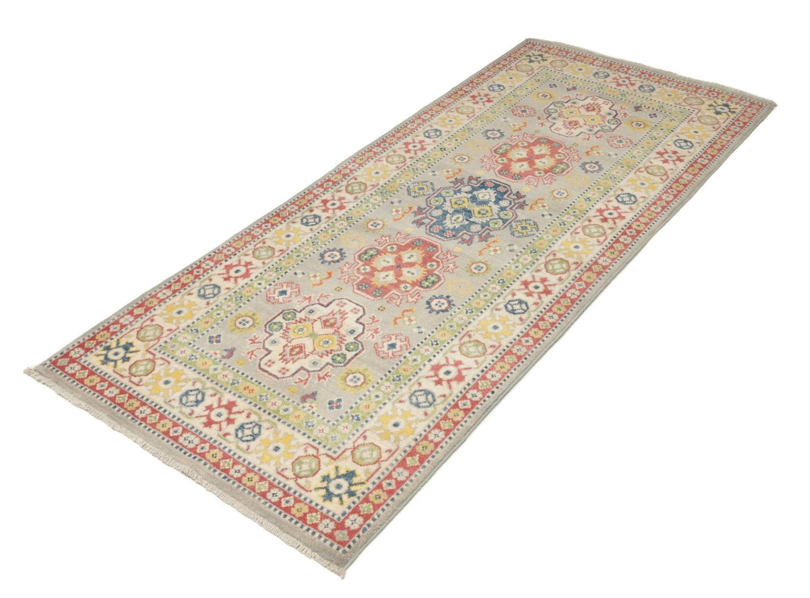 (Verkauft) Kazak Teppich 92 x 203 cm, geometrisches Muster, handgeknüpft