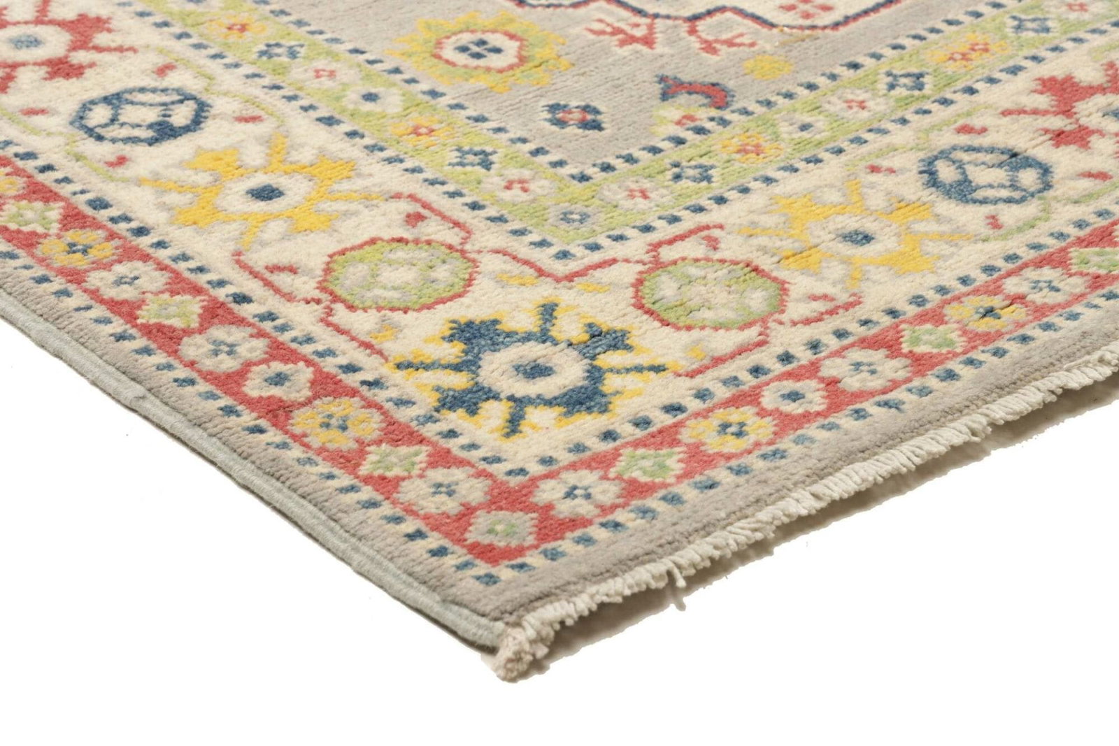 Neben seinem ausdrucksstarken Design besticht dieser Teppich durch seine Pflegeleichtigkeit und Langlebigkeit. Die Wolle ist von Natur aus schmutzabweisend und lässt sich leicht reinigen. Zudem ist der handgeknüpfte Kazak Teppich sowohl für Fußbodenheizungen geeignet als auch ideal für Allergiker, da die natürlichen Materialien keine schädlichen Chemikalien enthalten.