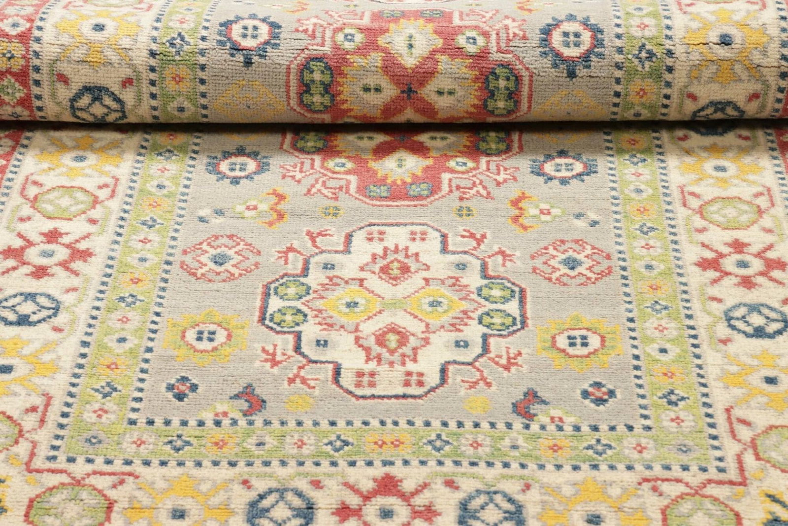 Ein weiterer Vorteil ist die Tatsache, dass jeder handgeknüpfte Teppich ein Unikat ist. Das bedeutet, dass es keine zwei identischen Teppiche gibt, was dem Kazak Teppich eine besondere Exklusivität verleiht. Mit dem Kauf dieses Teppichs entscheiden Sie sich für ein Stück Tradition und Handwerkskunst, das Ihr Zuhause bereichert.