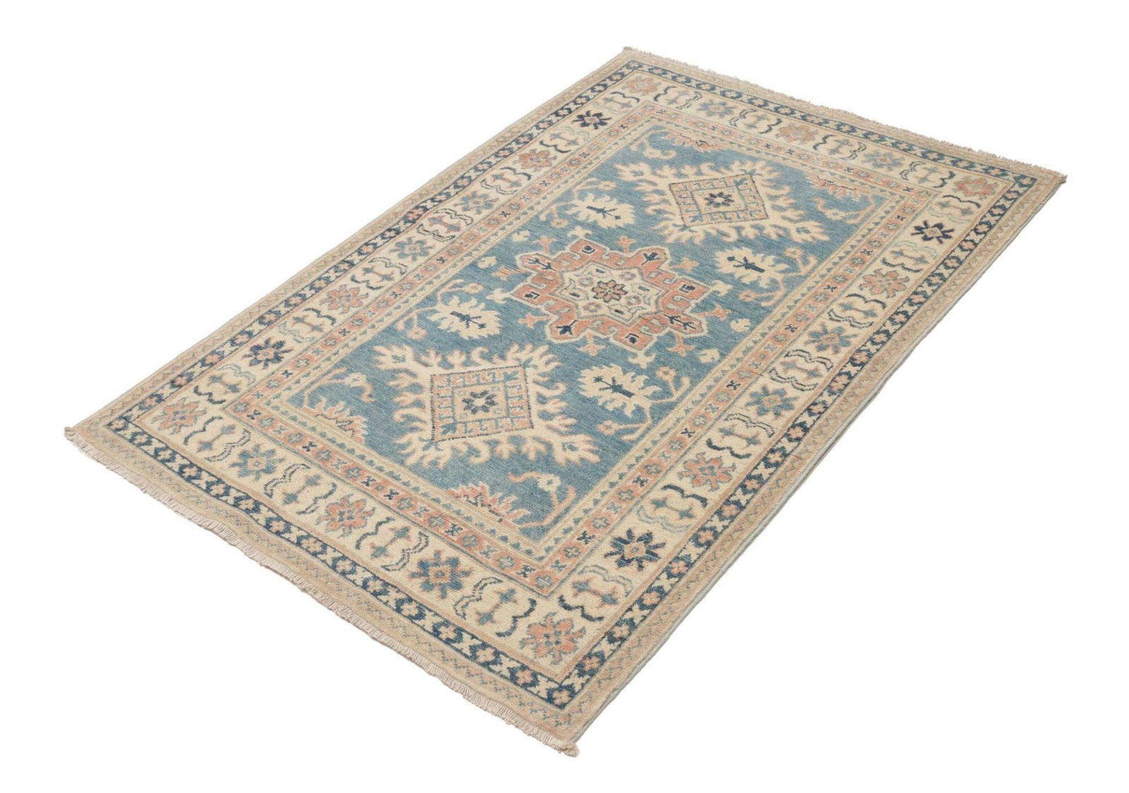 Kazak Teppich | Knotendichte: ca. 100.000 Knoten/m² | Material: 100% Schurwolle und 100% Baumwolle | Größe: 98 x 138 cm | Zustand: Handgeknüpft und hochwertig | Herkunft: Pakistan | Geometrische Muster und Figuren