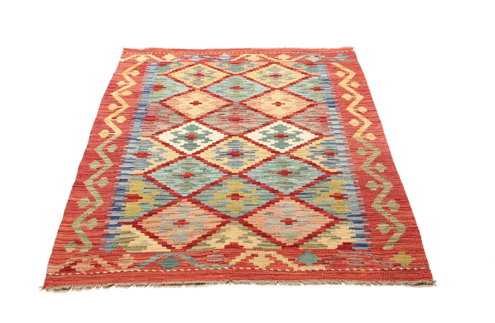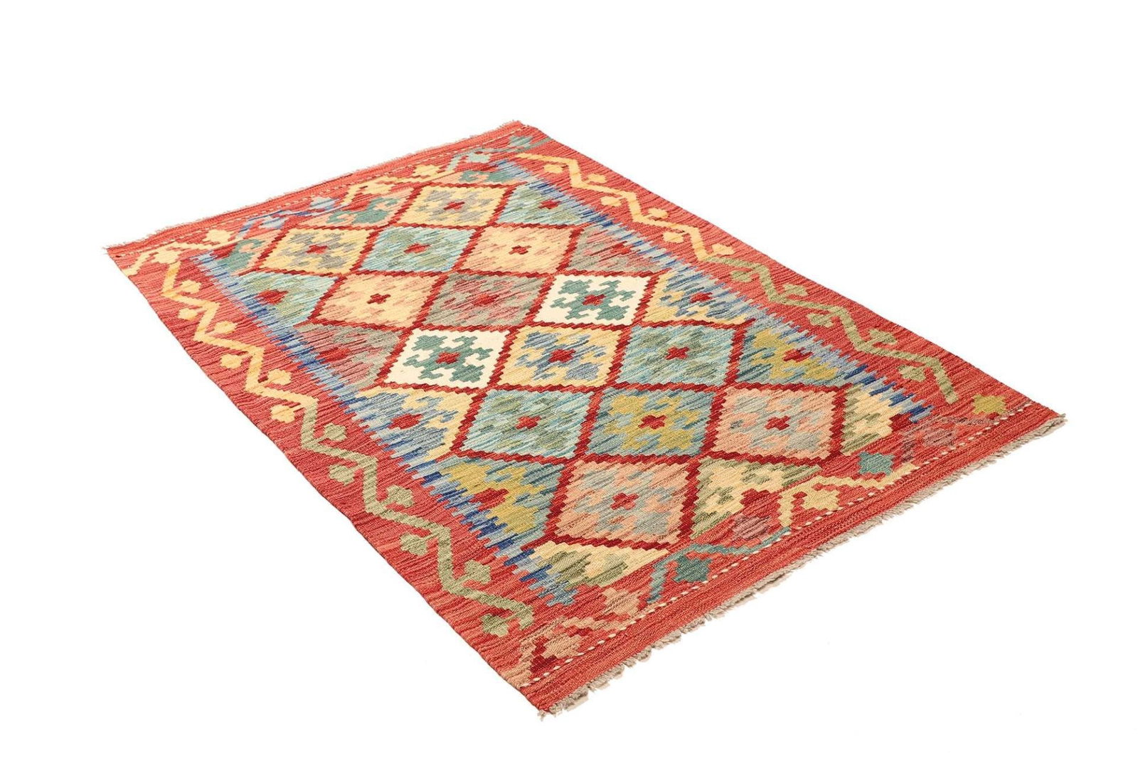 Kelim 105 x 146cm handgewebt, rustikaler Flair aus Wolle