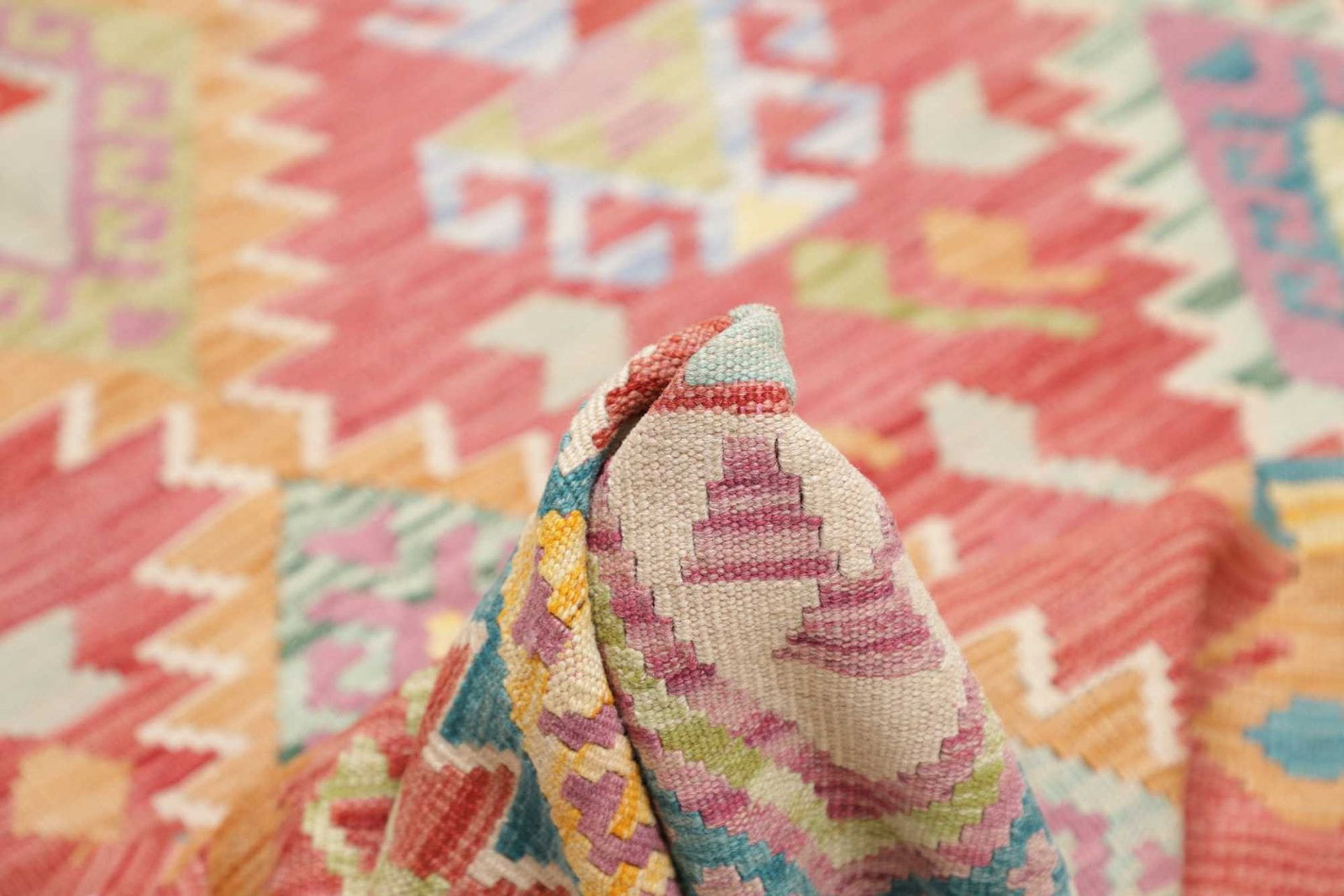 Pakistani Kelims sind bekannt für ihre dichte Webart, die hohe Knotendichte und die Verwendung von natürlichen Materialien wie Wolle und Baumwolle. Sie zeichnen sich durch geometrische Muster und lebendige Farben aus.