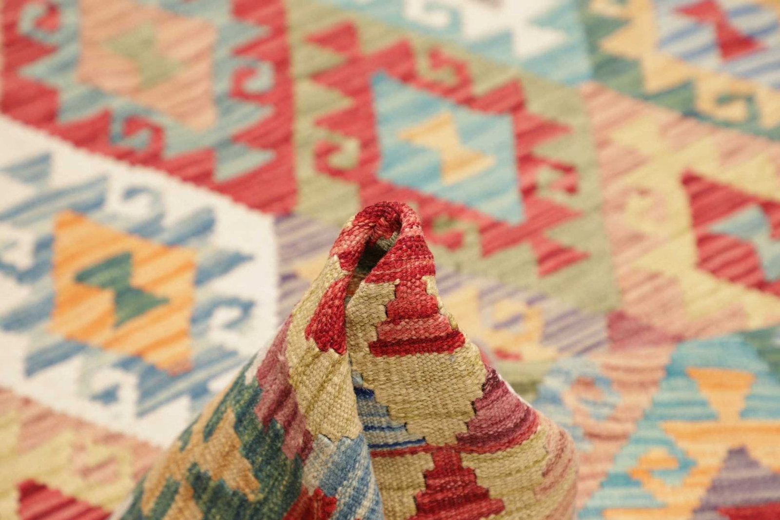 Im Gegensatz zu vielen anderen Orientteppichen, die geknüpft werden, werden Kelim Teppiche gewebt. Diese Technik verleiht ihnen nicht nur ein charakteristisches Aussehen und einen dünnen Flor, sondern ermöglicht auch eine schnellere Herstellung und oft ein leichteres Gewicht.
