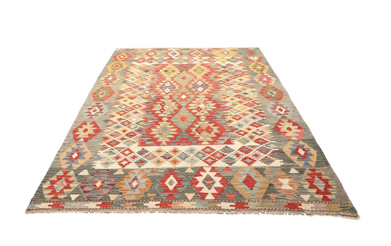 Kelim 181 x 246cm, handgewebt, rustikales Flair, Schurwolle