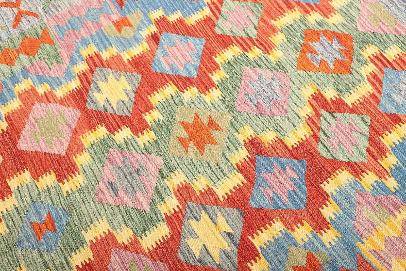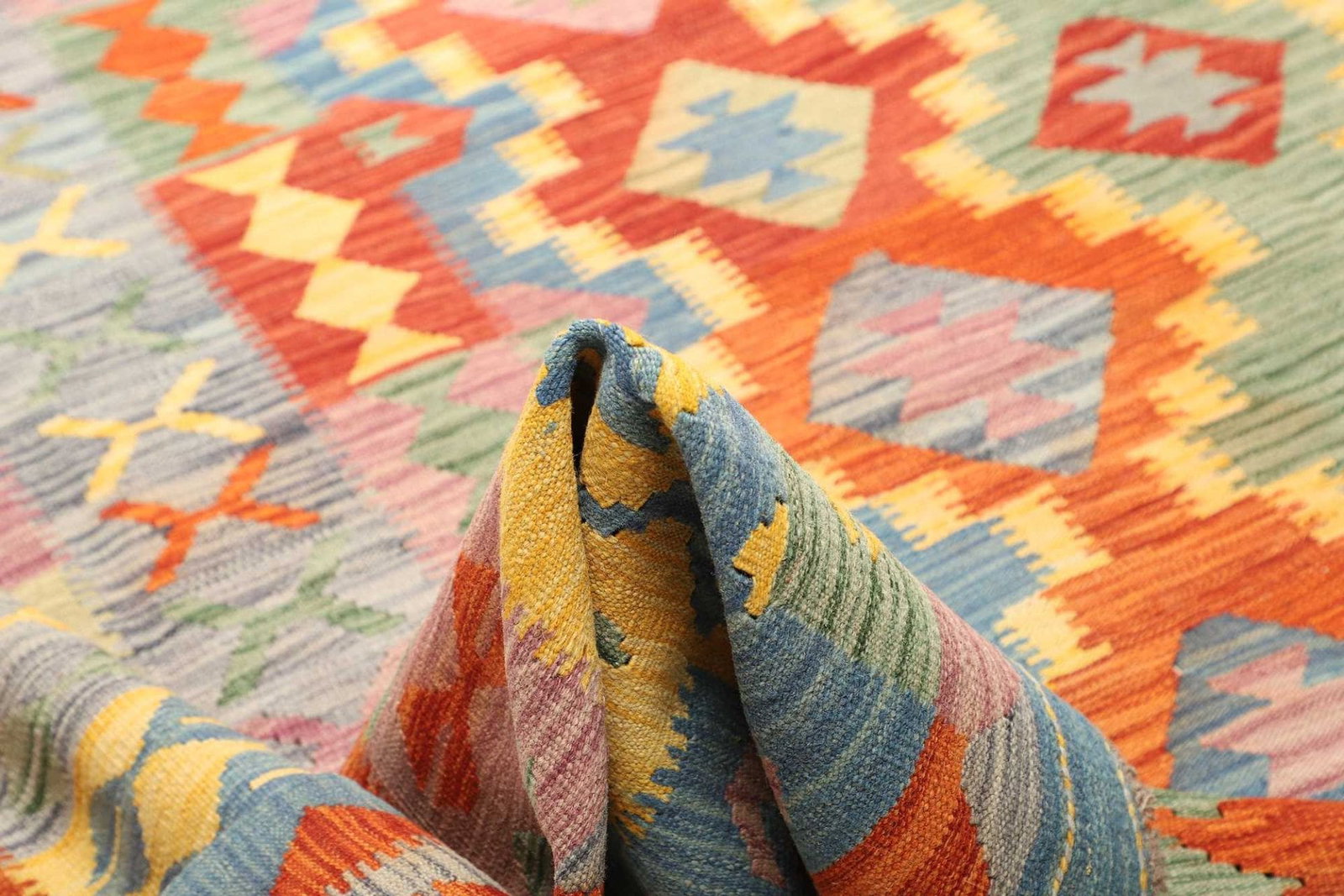 Kelim Teppich | Größe: 323 x 361 cm | Knotendichte: ca. 200.000 Knoten/m² | Material: 100% Schurwolle (Flor), 100% Baumwolle (Kette) | Höhe: ca. 5 mm | Herkunft: Afghanistan | Verarbeitung: Handgewebt | Beidseitig verwendbar, rustikales Flair, ideal für moderne Einrichtungen