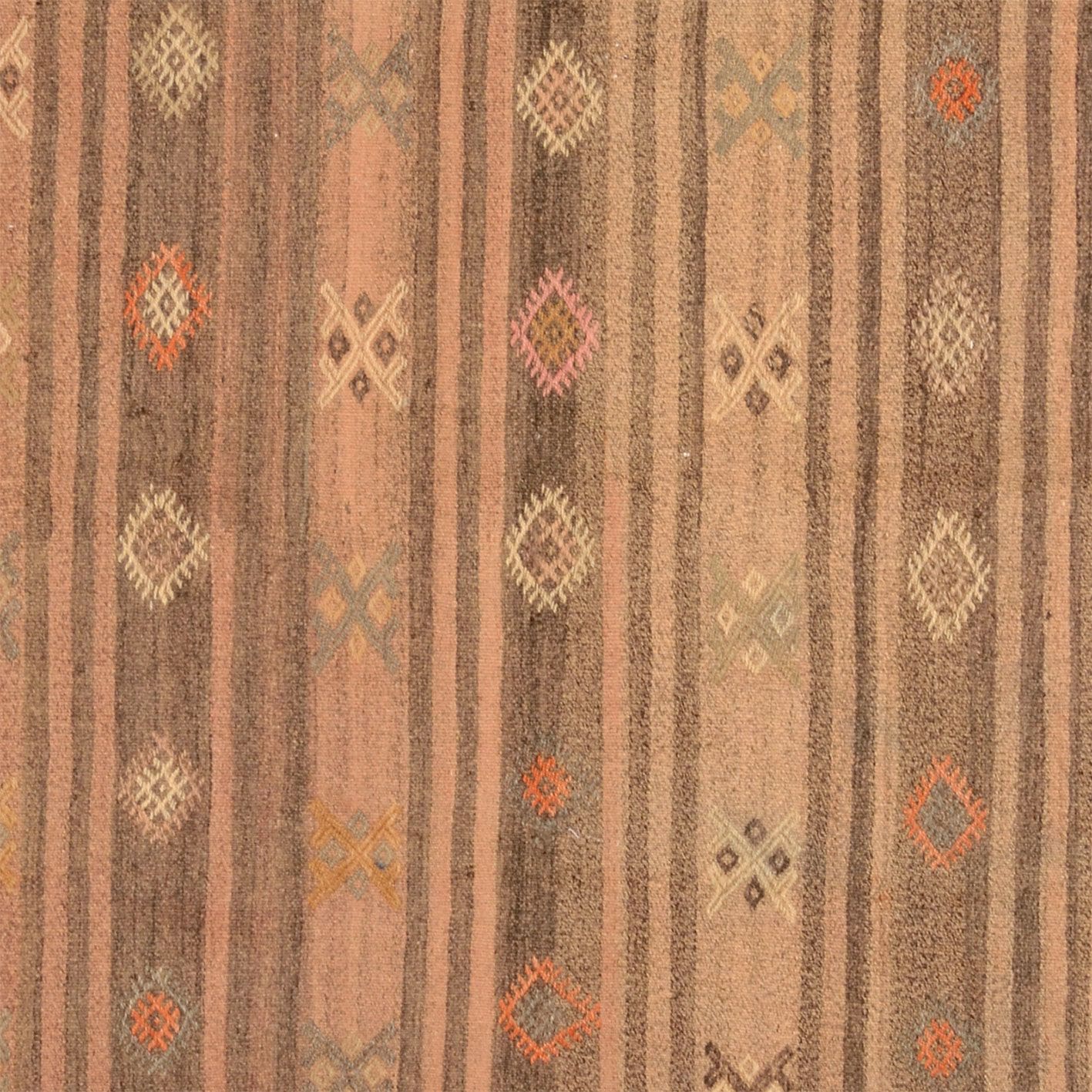 Die Farbauswahl des Kelim Anatol ist sorgfältig abgestimmt und spiegelt die natürliche Farbpalette der Region wider. Die Farbtöne variieren von sanften erdigen Nuancen bis zu kräftigen, lebhaften Akzenten, die den Teppich zu einem Blickfang in jedem Raum machen.