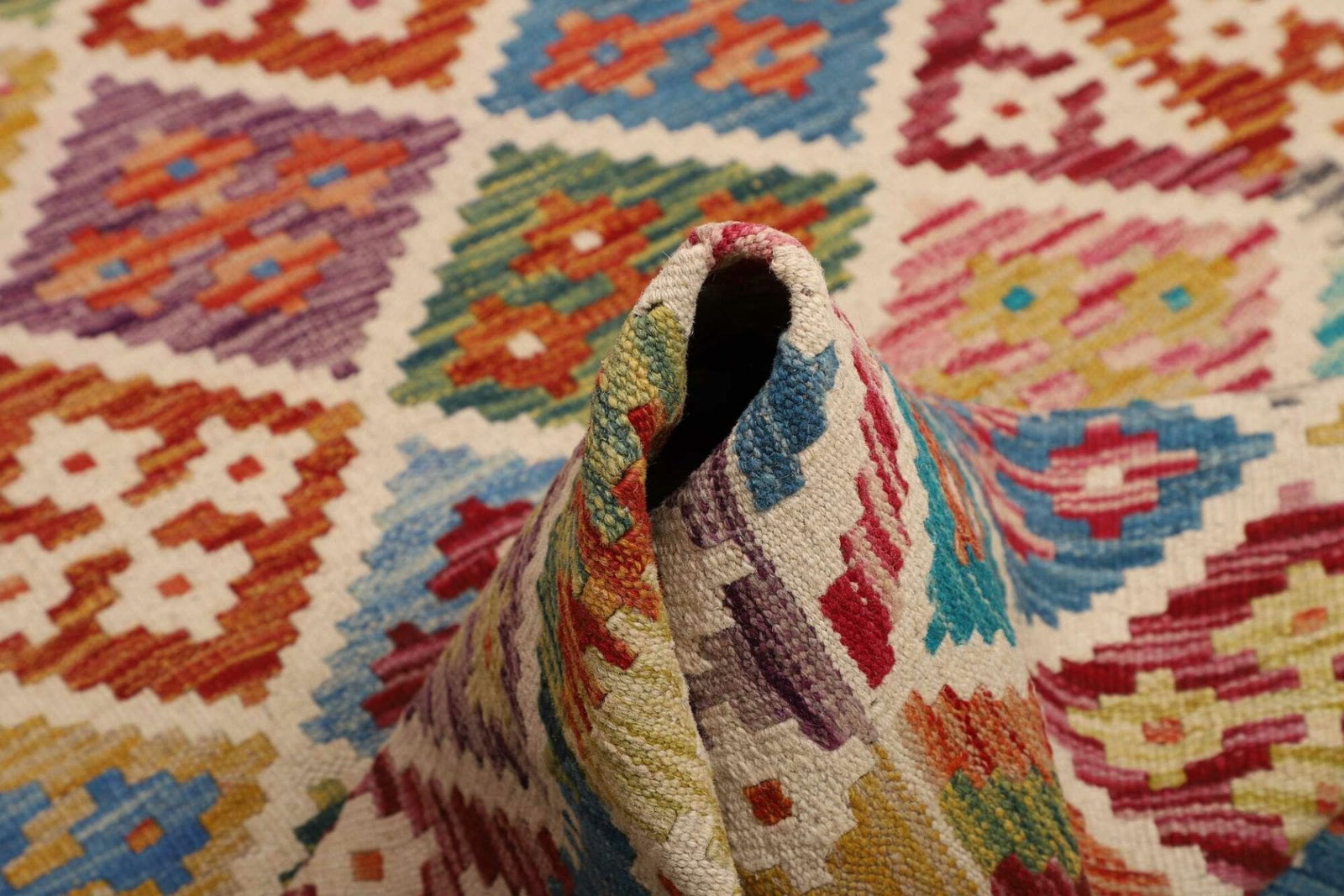 Durch die handwerkliche Fertigung wird jeder Kelim Teppich einzigartig. Diese Einzigartigkeit und die unverwechselbare Textur sind das Ergebnis von jahrhundertelangen Traditionen und einer tiefen Verbundenheit der Weber mit ihrem Handwerk.