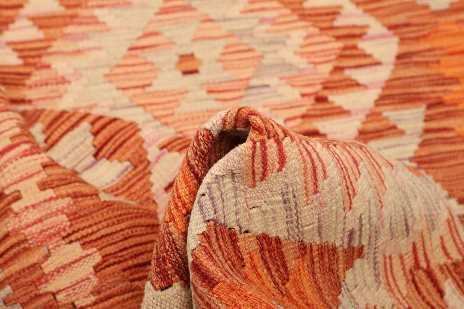 Der Kelim Teppich ist aus hochwertiger Schurwolle gefertigt, die nicht nur für ihre Langlebigkeit bekannt ist, sondern auch für ihre natürlichen Eigenschaften. Schurwolle ist von Natur aus schmutzabweisend und reguliert die Temperatur, was für ein angenehmes Raumklima sorgt. Die intensive und sorgfältige Handwebtechnik, die für die Herstellung dieses Teppichs verwendet wird, ermöglicht es, feine Muster und kräftige Farben zu kreieren, die die Oberflächenstruktur bereichern und dem Teppich einen einzigartigen Charakter verleihen.