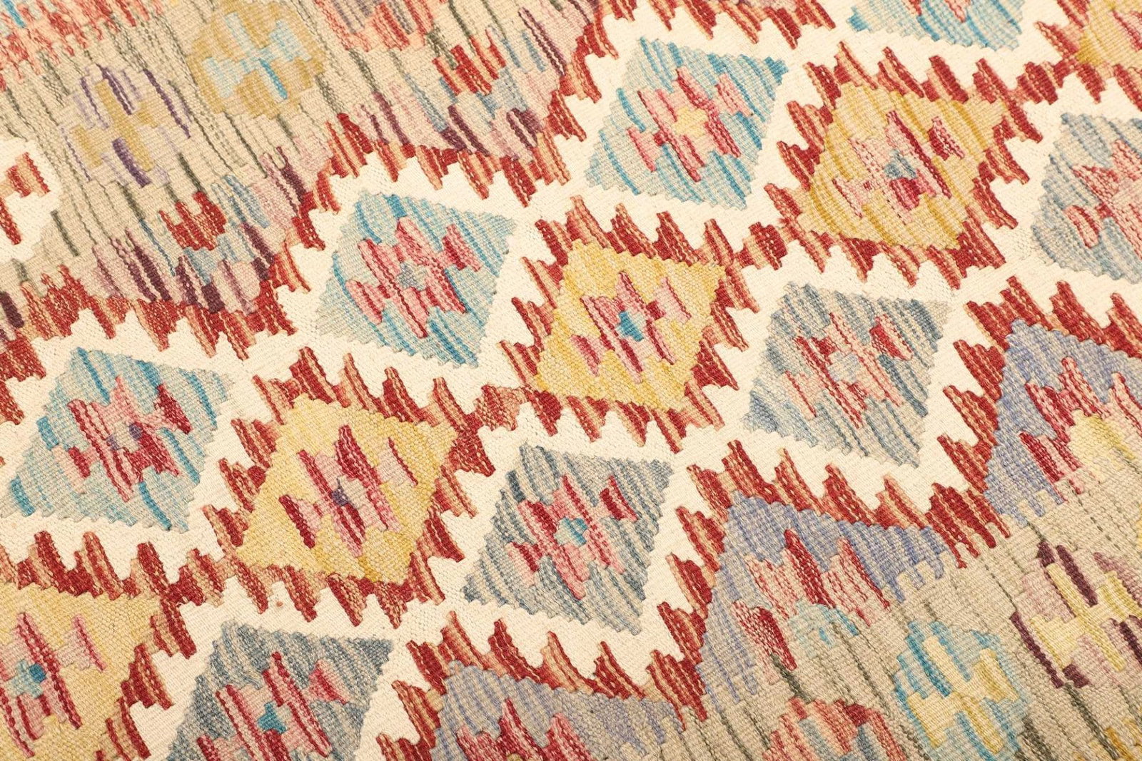 Der Kelim Teppich ist durch seine geometrischen Muster und lebendigen Farben gekennzeichnet, die typisch für rustikale Designs sind. Diese Muster erzählen Geschichten und können oft tiefere Bedeutungen in Bezug auf Kultur, Natur oder das tägliche Leben der Menschen beinhalten. Die Verwendung von klaren Linien und symmetrischen Formen verleiht dem Teppich eine moderne Eleganz, die sich wunderbar mit verschiedenen Einrichtungsstilen kombinieren lässt.