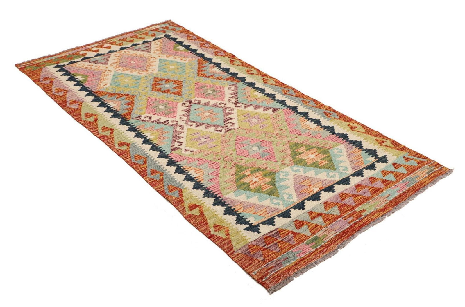302$Ursprünglicher Preis war: 302$240$Aktueller Preis ist: 240$Kelim Teppich | Knotendichte: ca. 200.000 Knoten/m² | Material: 100% Schurwolle | Größe: 101×204 cm | Herkunft: Pakistan | Verarbeitung: Handgewebt | Höhe: ca. 5 mm | Kette: 100% Baumwolle