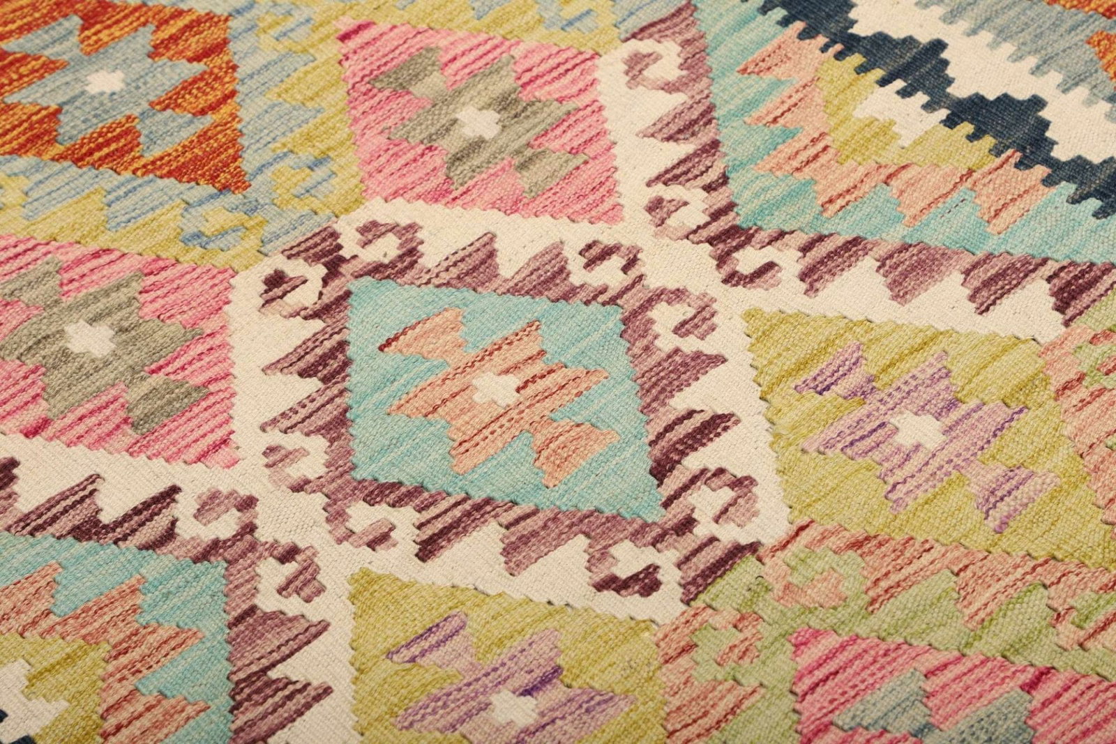 Kelim Teppich, handgewebt, rustikales Flair, Wolle