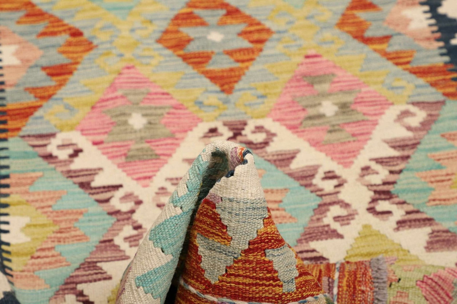 Um die Langlebigkeit Ihres Kelim Teppichs zu gewährleisten, empfehlen wir regelmäßiges Staubsaugen auf einer niedrigen Saugstufe. Bei Flecken sollten diese sofort mit einem feuchten Tuch abgetupft werden. Eine professionelle Reinigung alle paar Jahre hilft, die Farben frisch zu halten.