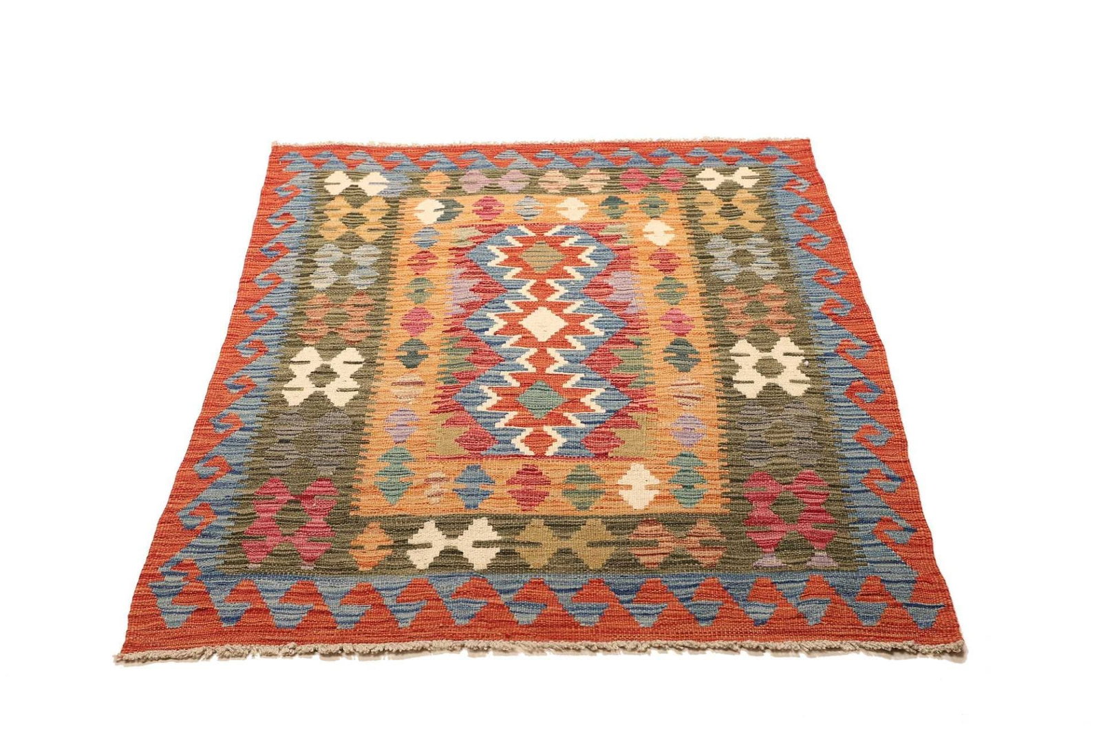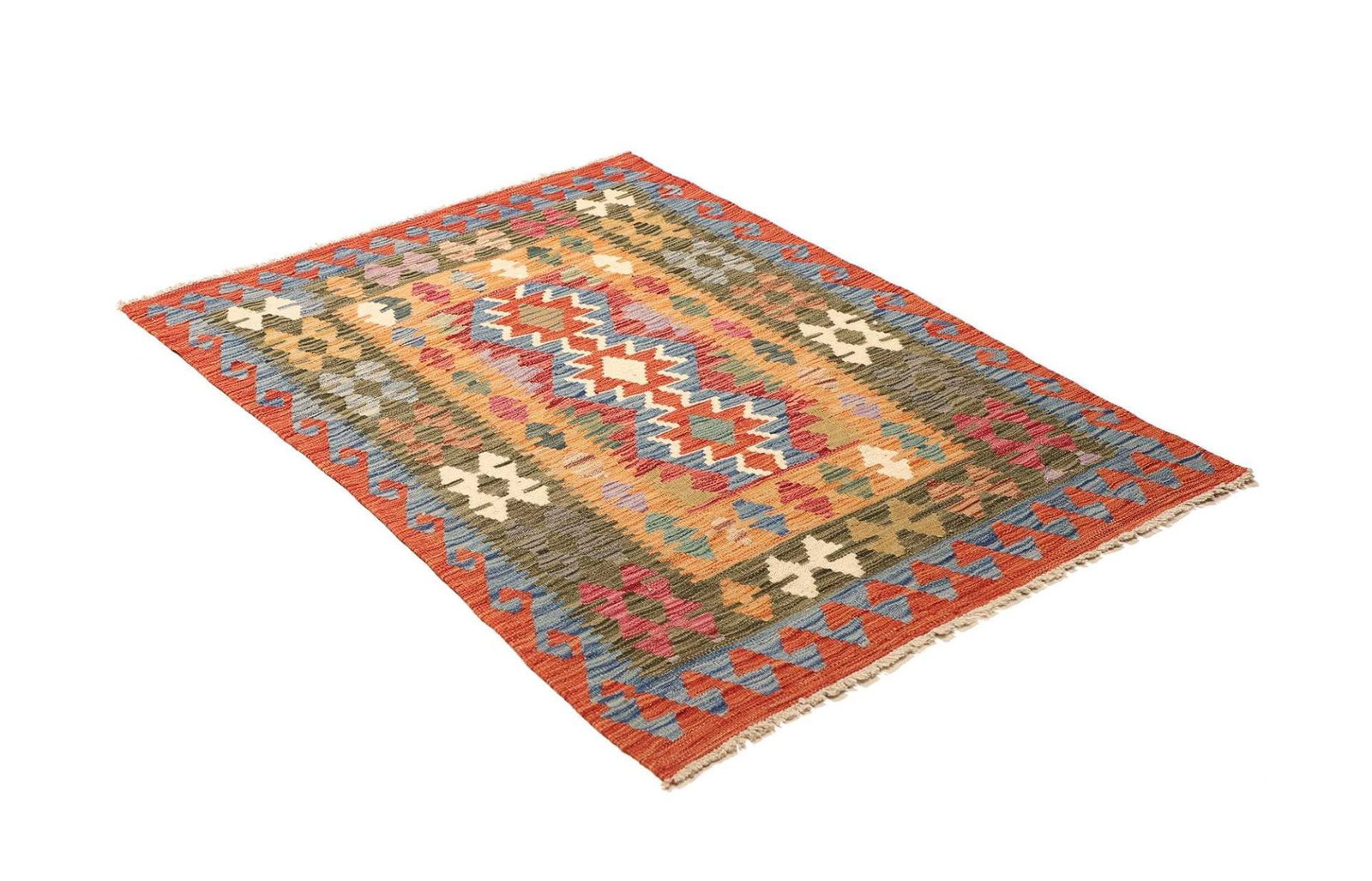 Kelim Teppich 102 x 143cm, handgewebt, rustikales Flair, Wolle