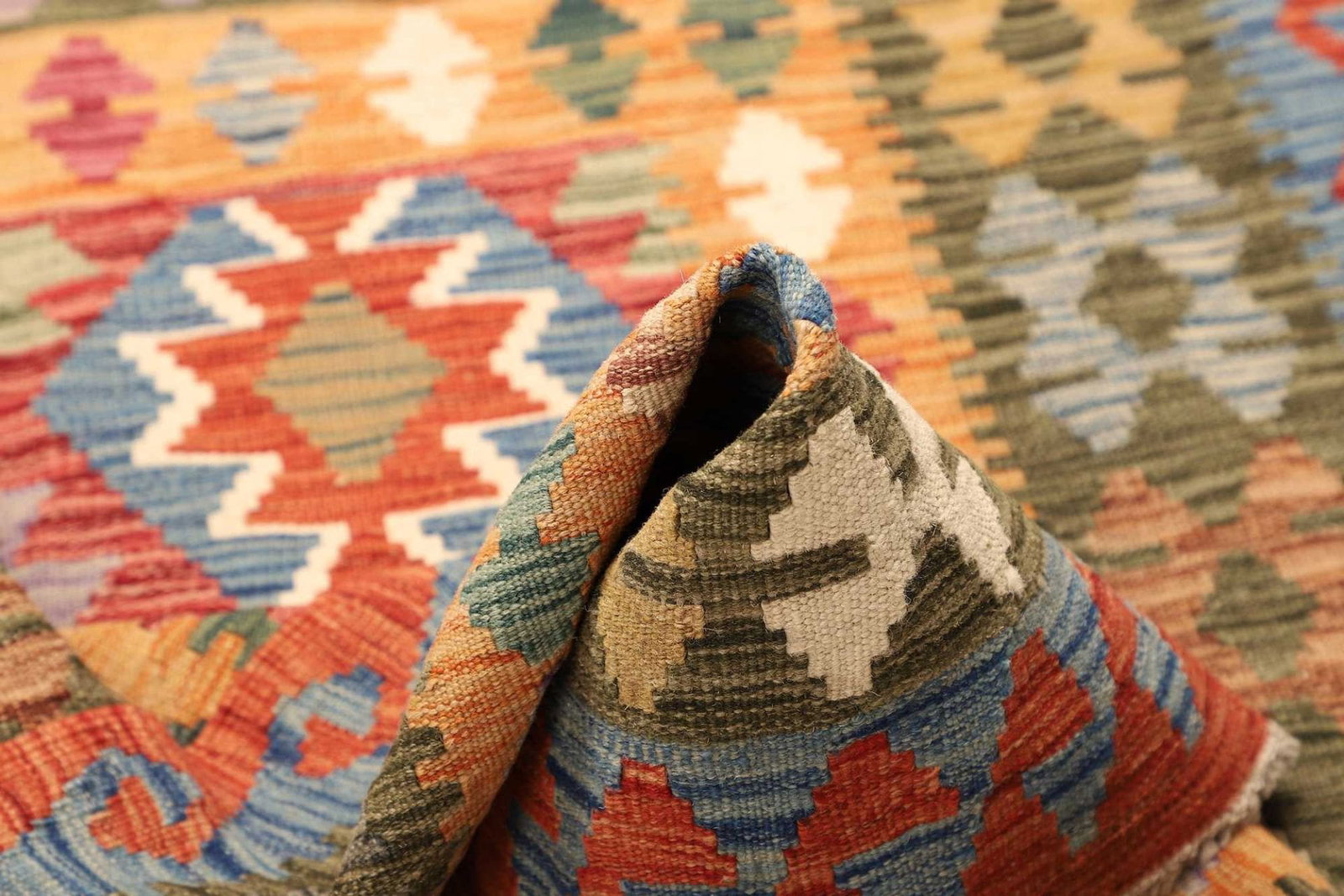Kelim Teppich, handgewebt, rustikales Flair, Wolle