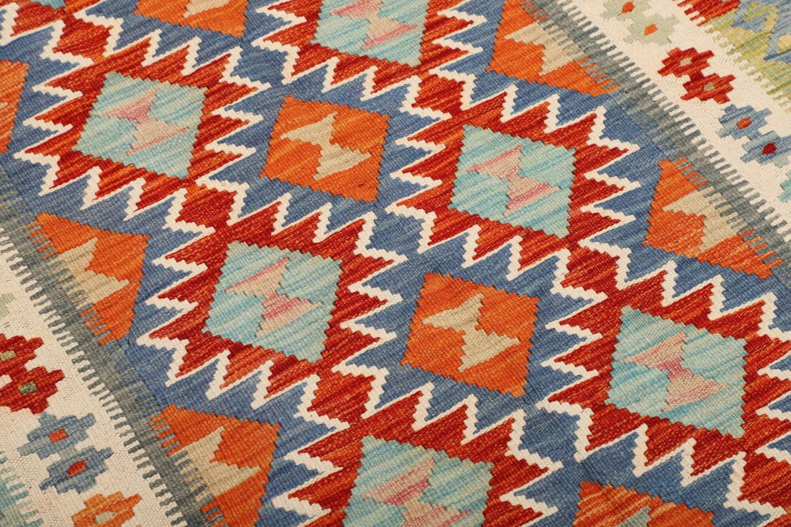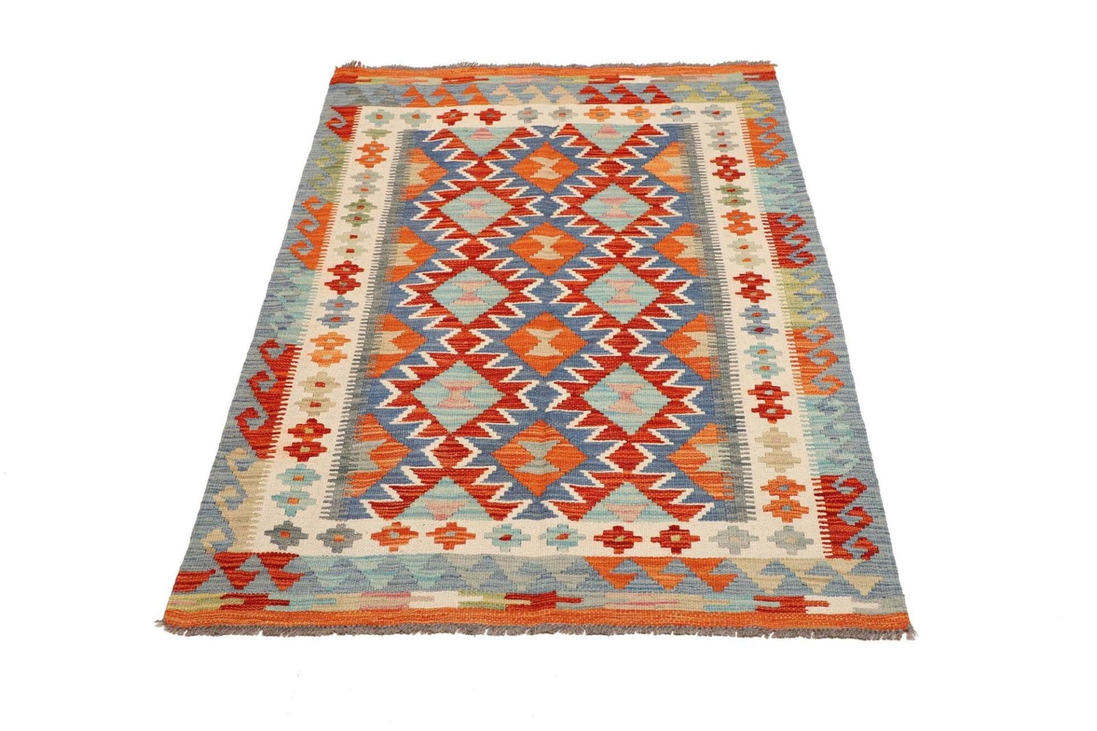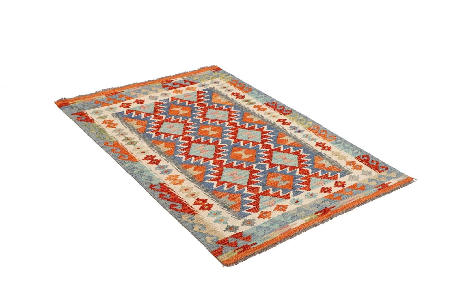 Kelim Teppich | Größe: 102 x 145 cm | Knotendichte: ca. 200.000 Knoten/m² | Flor: 100% Schurwolle | Kette: 100% Baumwolle | Herkunft: Pakistan | Handgewebte Qualität | Höhe: ca. 5 mm