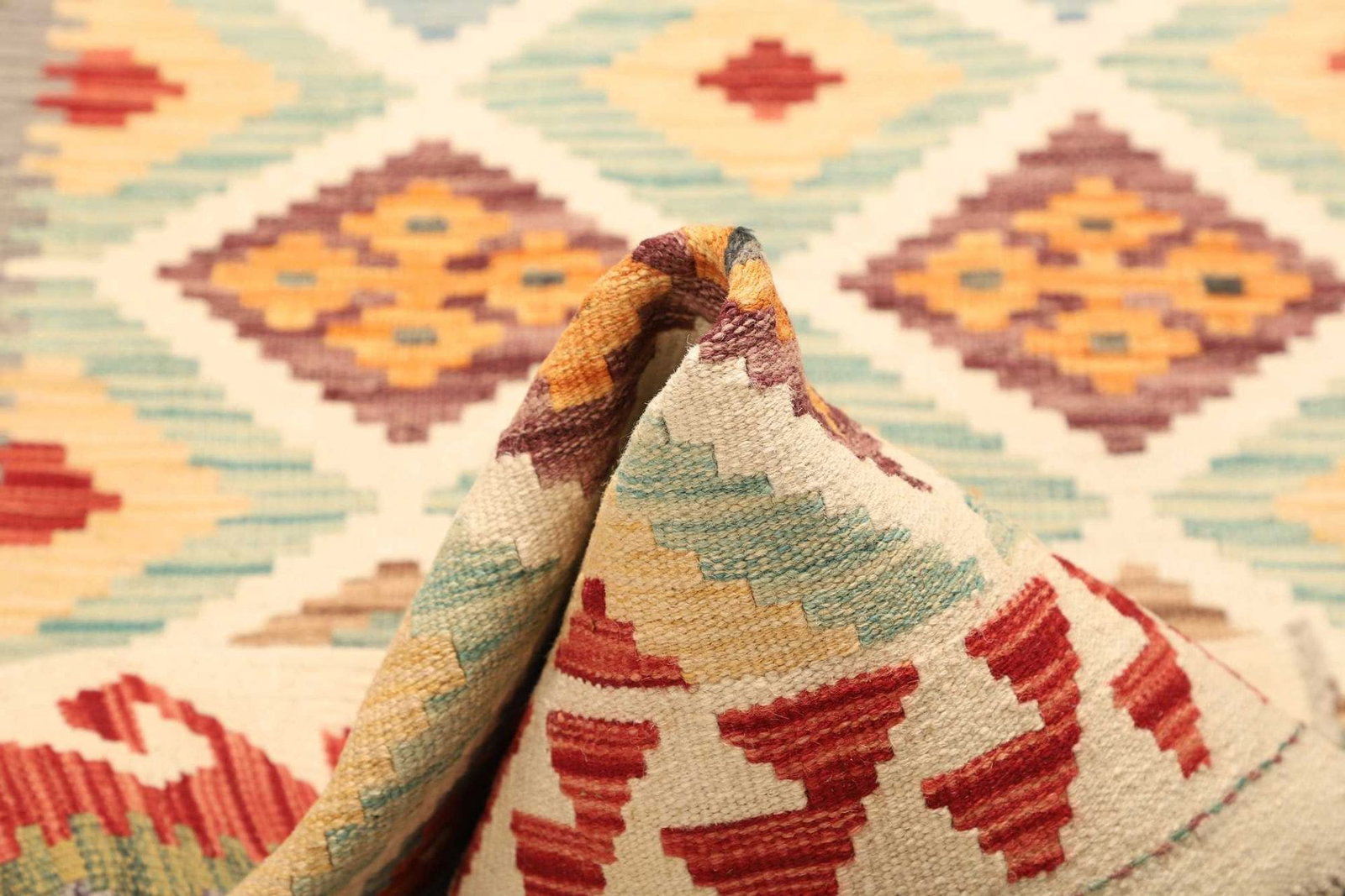 Ein herausragendes Merkmal des Kelim Teppichs ist seine doppelte Funktionalität. Er kann als dekoratives Element in Wohnräumen, Fluren oder Schlafzimmern verwendet werden, um einen Hauch von orientalischem Flair einzufügen, und gleichzeitig ist er praktisch und strapazierfähig, was ihn ideal für stark frequentierte Bereiche macht. Zudem ist jeder Teppich ein Unikat, das die Feinheit und das handwerkliche Können seiner Schöpfer widerspiegelt.