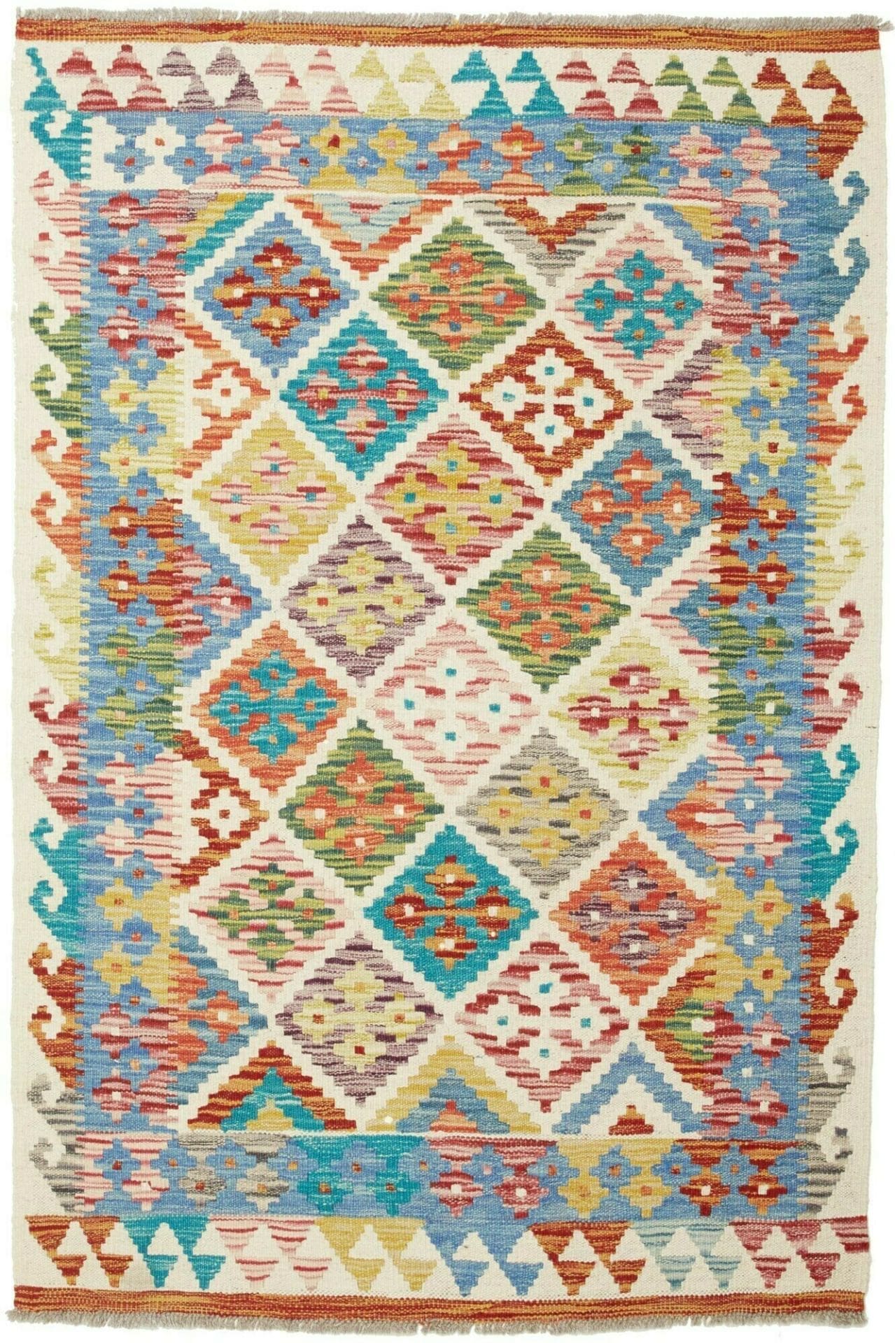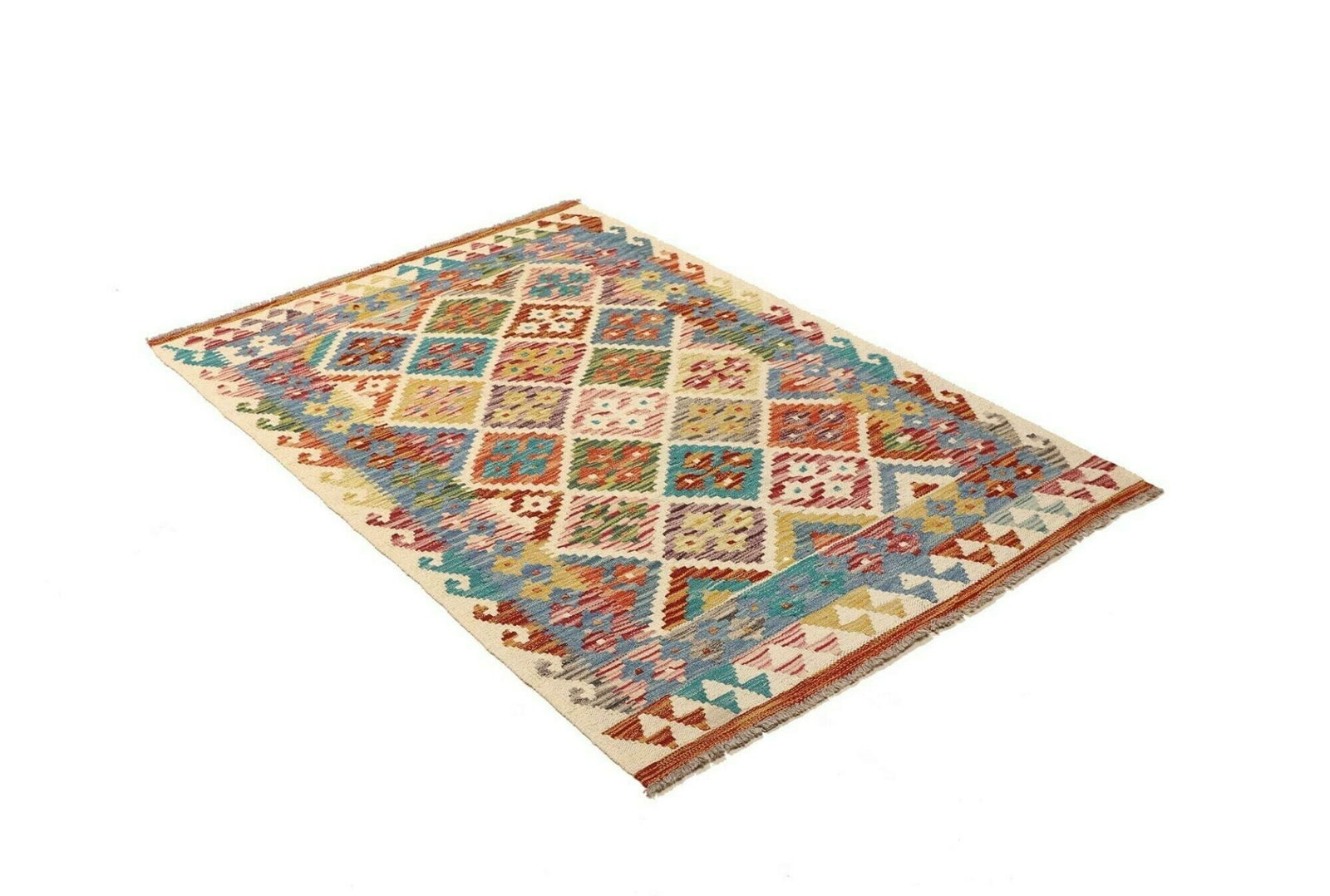 Kelim Teppich | Knotendichte: ca. 200.000 Knoten/m² | Material: 100% Schurwolle mit Baumwollkette | Größe: 103 x 150 cm | Handgewebte Qualität aus Pakistan | Florhöhe: ca. 5 mm | Vielseitig einsetzbar, ideal für moderne Wohnräume
