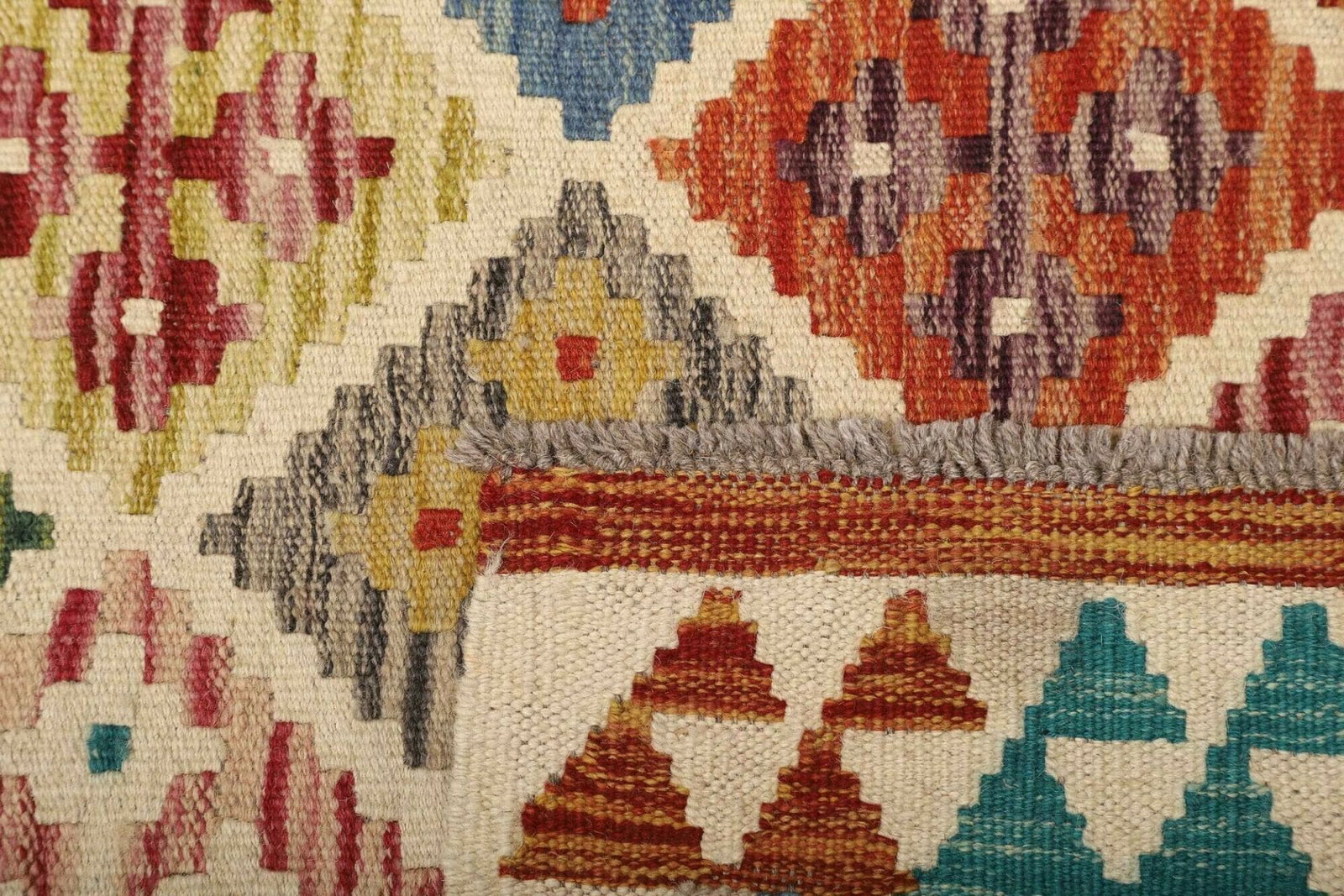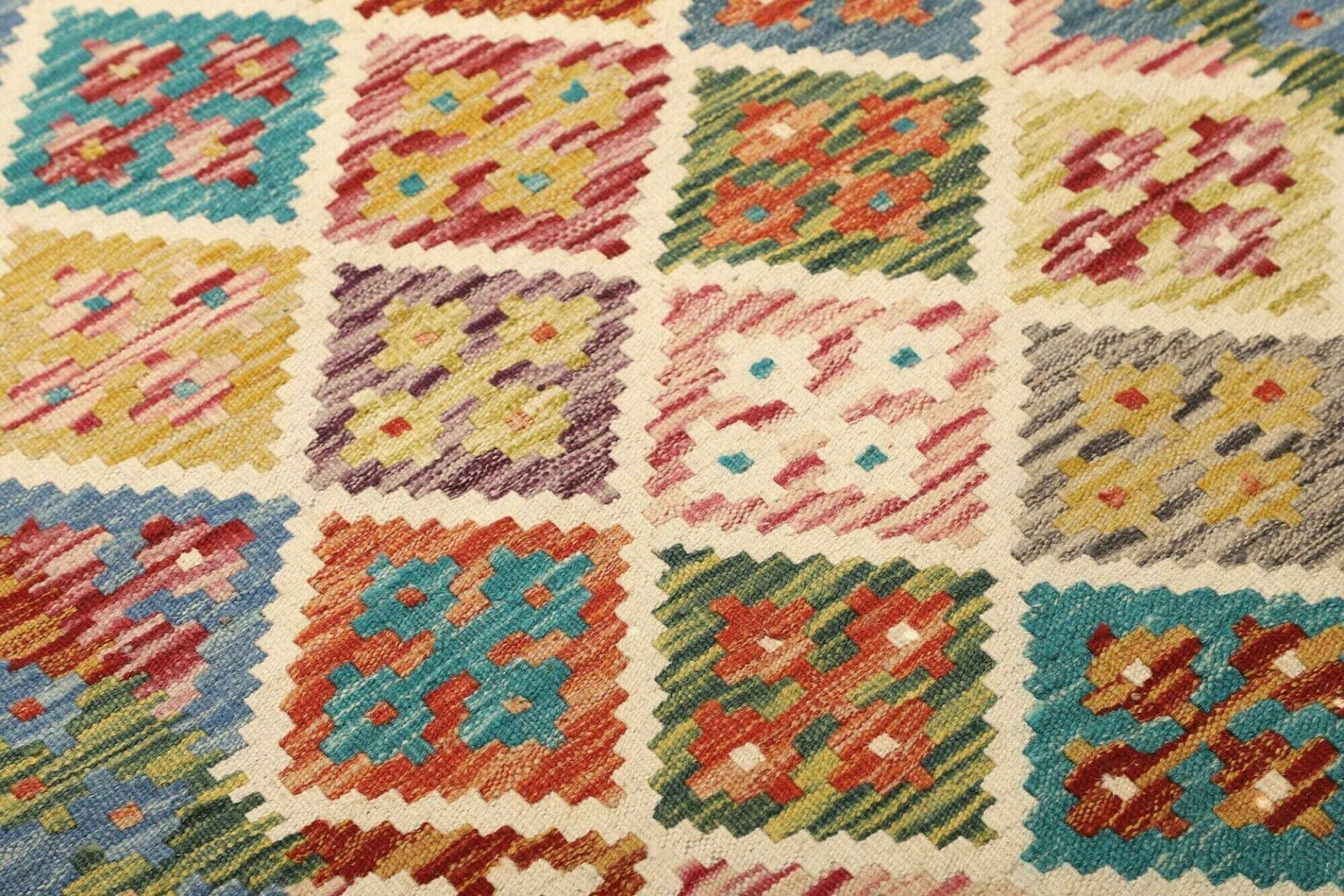 Der Kelim Teppich, den Sie hier betrachten, spiegelt die Tradition und das Können der Handwerker wider, die viele Stunden aufwenden, um diese kunstvollen Designs zu schaffen. Kelim-Teppiche gehören zu den ältesten Textilien der Welt und sind Berichte über die Lebensweise und die Kultur der Völker, die sie gedeihen ließen.