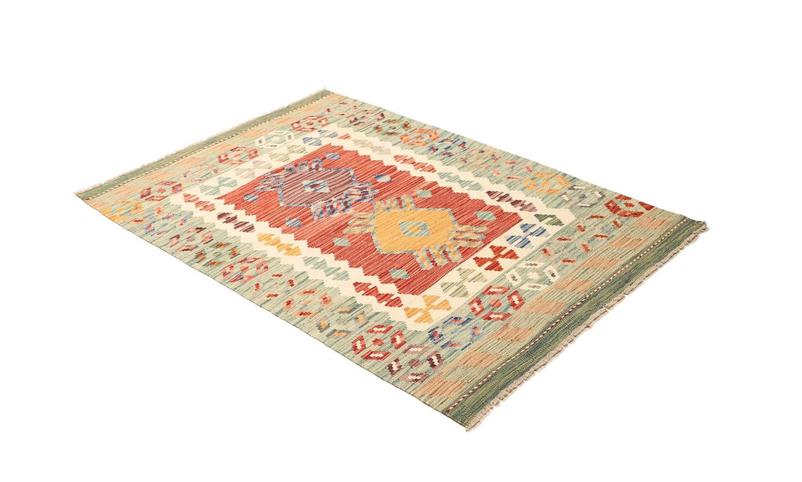 275$Ursprünglicher Preis war: 275$202$Aktueller Preis ist: 202$Kelim Teppich | Größe: 103 x 151 cm | Knotendichte: ca. 200.000 Knoten/m² | Flor: 100% Schurwolle | Kette: 100% Baumwolle | Herkunft: Pakistan | Zustand: Handgewebte Qualität, rustikales Flair