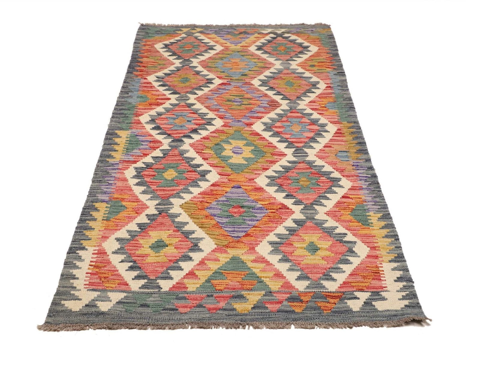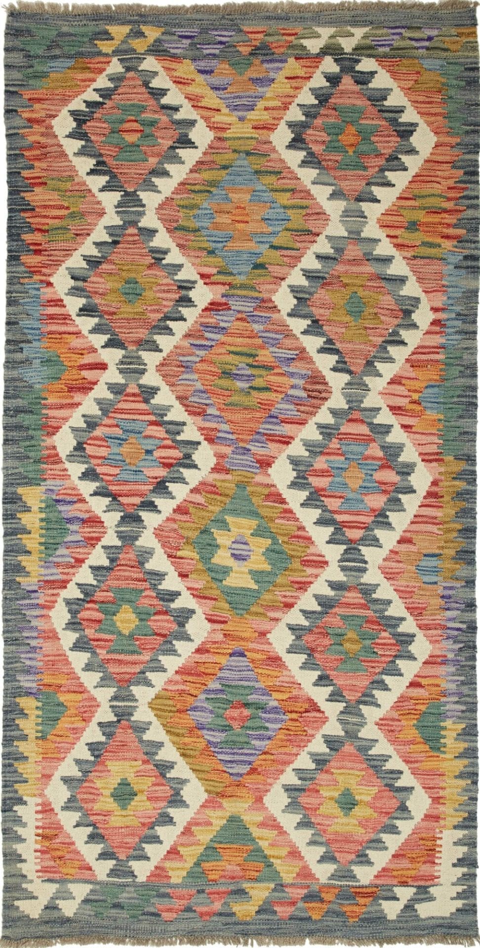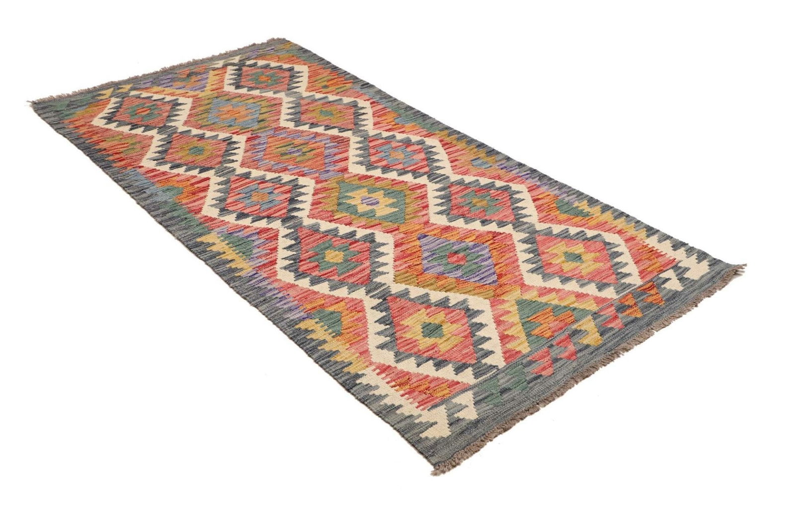 Kelim Teppich | Knotendichte: ca. 200.000 Knoten/m² | Material: 100% Schurwolle und 100% Baumwolle | Größe: 103 x 199 cm | Zustand: Handgewebt | Herkunft: Pakistan | Florhöhe: ca. 5 mm