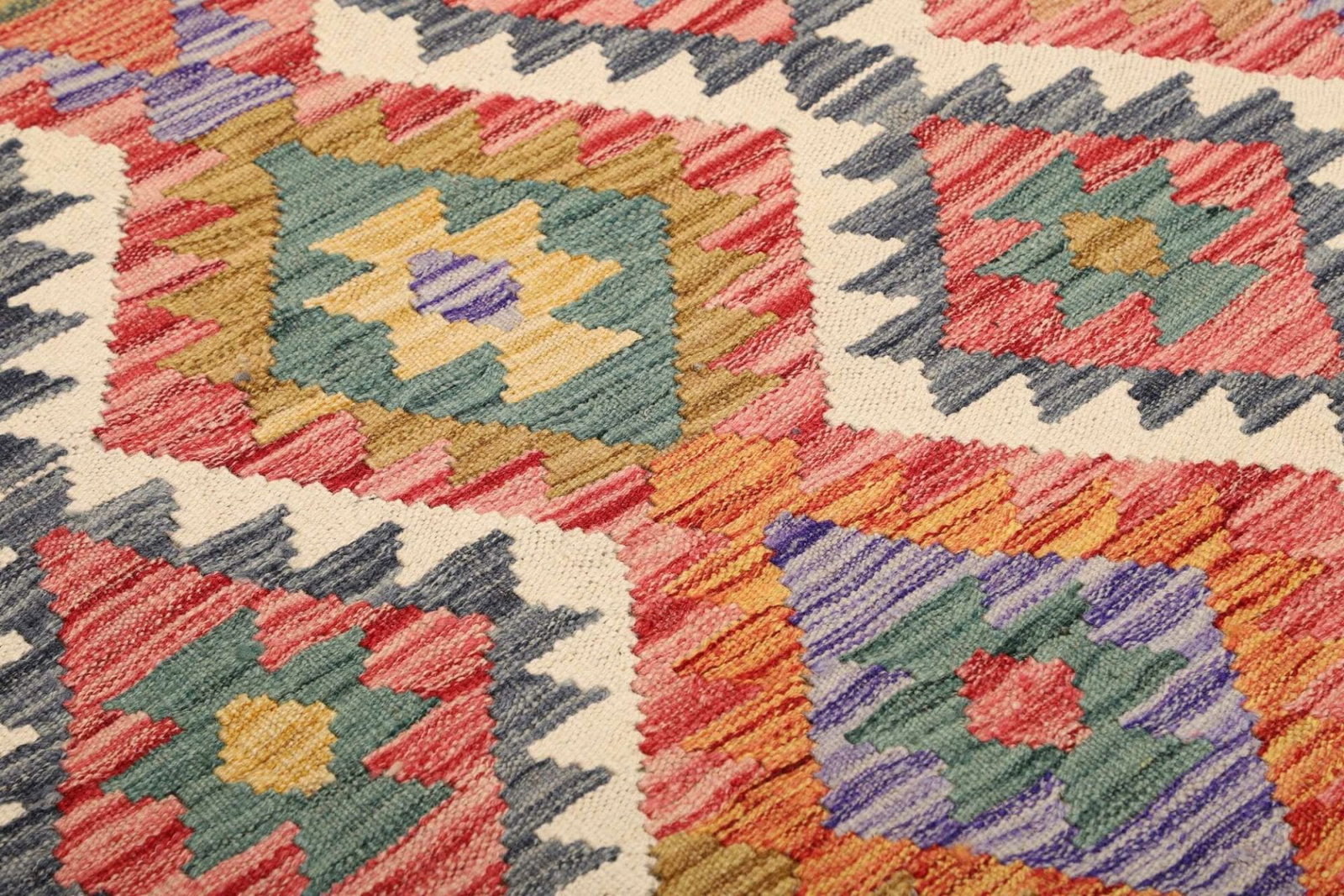 Kelim Teppich handgewebt, Schurwolle, rustikal