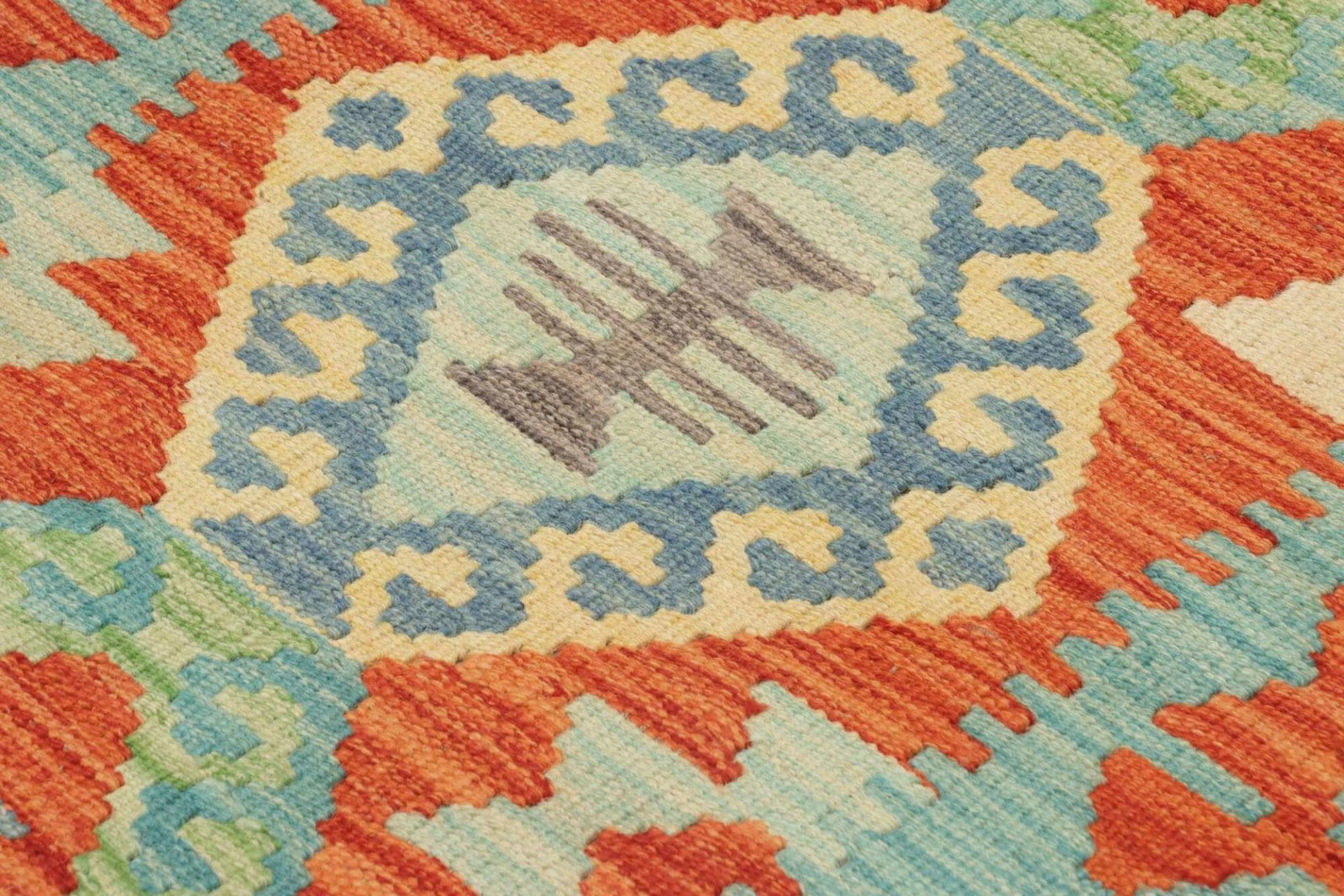 Die Farbpalette des Kelim Teppichs ist vielfältig, aber neigt meistens zu Erdtönen, die sich leicht in unterschiedliche Einrichtungsstile integrieren lassen. Das rustikale Design macht ihn zu einem perfekten Begleiter für moderne als auch klassische Interieurs, da er eine warme, einladende Atmosphäre schafft.
