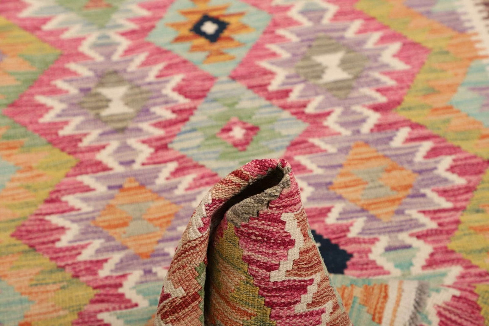 Ein herausragendes Merkmal dieses handgewebten Kelim Teppichs ist seine Vielseitigkeit. Er lässt sich sowohl in rustikalen als auch in modernen Wohnkonzepten integrieren und sorgt immer für einen Blickfang. Zudem ist der Teppich schadstoffgeprüft und somit ideal für Haushalte mit Allergikern oder empfindlichen Personen. Sein natürliches Material und die nachhaltigen Produktionsmethoden garantieren eine wertvolle Investition in die eigene Einrichtung.