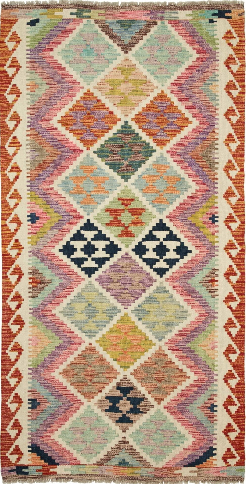 Kelim Teppich 104 x 203 cm, handgewebt, rustikales Flair, Wolle