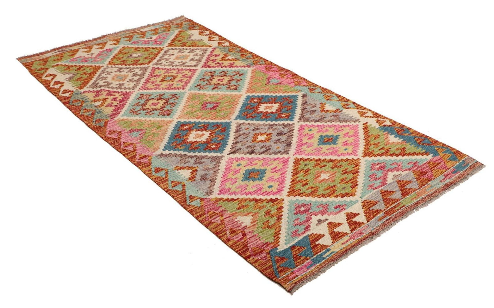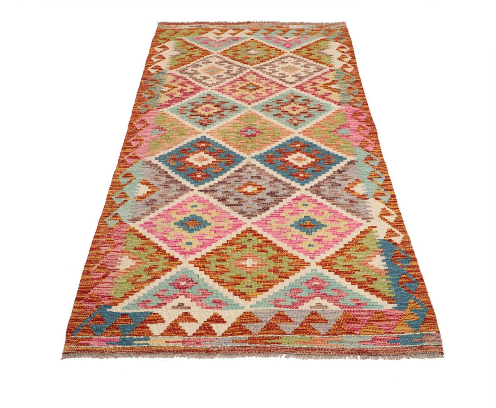 321$Ursprünglicher Preis war: 321$274$Aktueller Preis ist: 274$Kelim Teppich | Knotendichte: ca. 200.000 Knoten/m² | Material: 100% Schurwolle (Flor), 100% Baumwolle (Kette) | Größe: 104 x 205 cm | Handgewebte Qualität | Herkunft: Pakistan | Zustand: Sehr gut, rustikales Flair