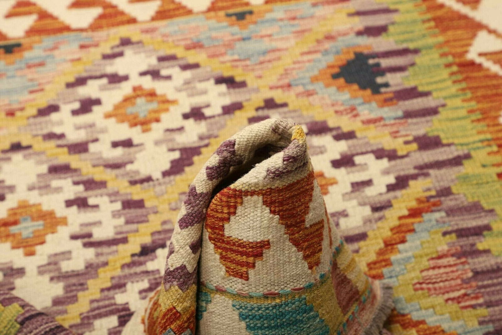 Handgewebter Ghashgai Kelim Teppich aus Wolle in Naturfarbe – 286 x 200 cm