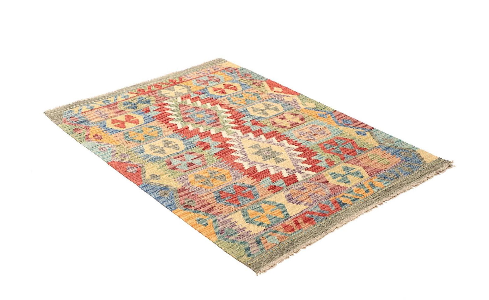 Kelim 205 x 150 cm – handgewebt mit doppeltem Muster, vielseitig einsetzbar als Teppich oder Wandbehang – handgewebt, Orientteppich