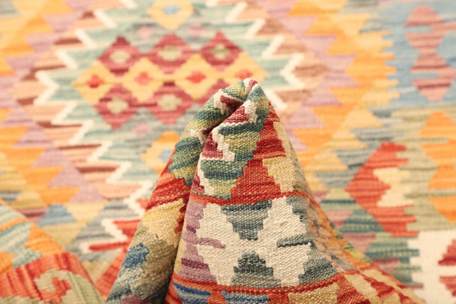 Der handgewebte Kelim Teppich ist mehr als nur ein Bodenbelag – er ist ein Kunstwerk, das Tradition und Handwerkskunst in Ihr Zuhause bringt. Mit seiner rustikalen Ausstrahlung und den vielfältigen Einsatzmöglichkeiten wird dieser Teppich schnell zu einem beliebten Element in Ihrer Einrichtung. Genießen Sie die warme Atmosphäre, die dieser Teppich schafft, und profitieren Sie von seinen praktischen Eigenschaften über viele Jahre hinweg.