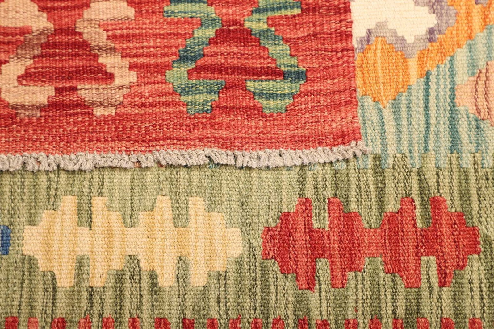 971$ In den WarenkorbKelim 215 x 144 cm – Handgewebt mit identischem Muster auf Vorder- und Rückseite – Orientteppich