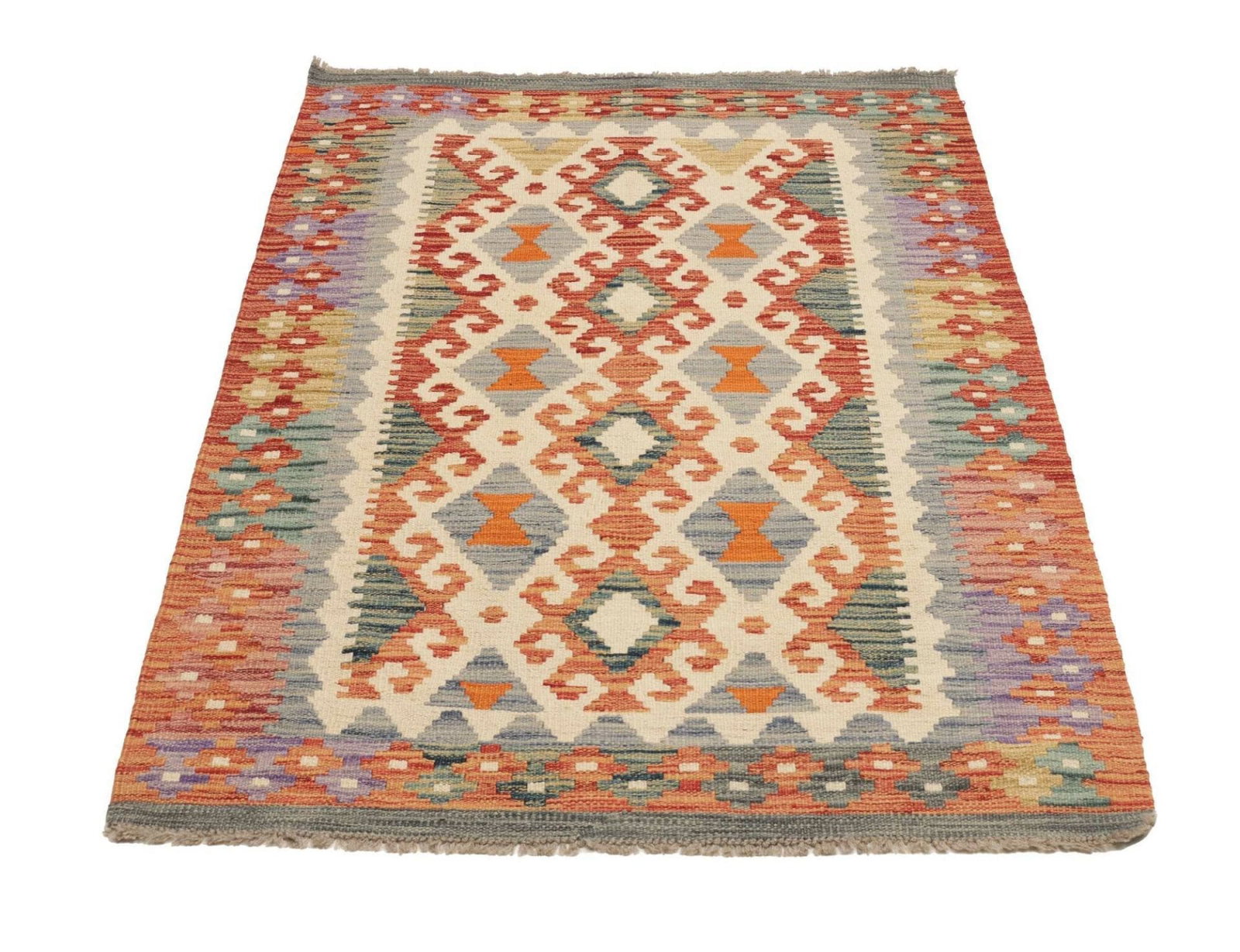 Kelim Teppich aus Schurwolle, handgewebt, rustikal