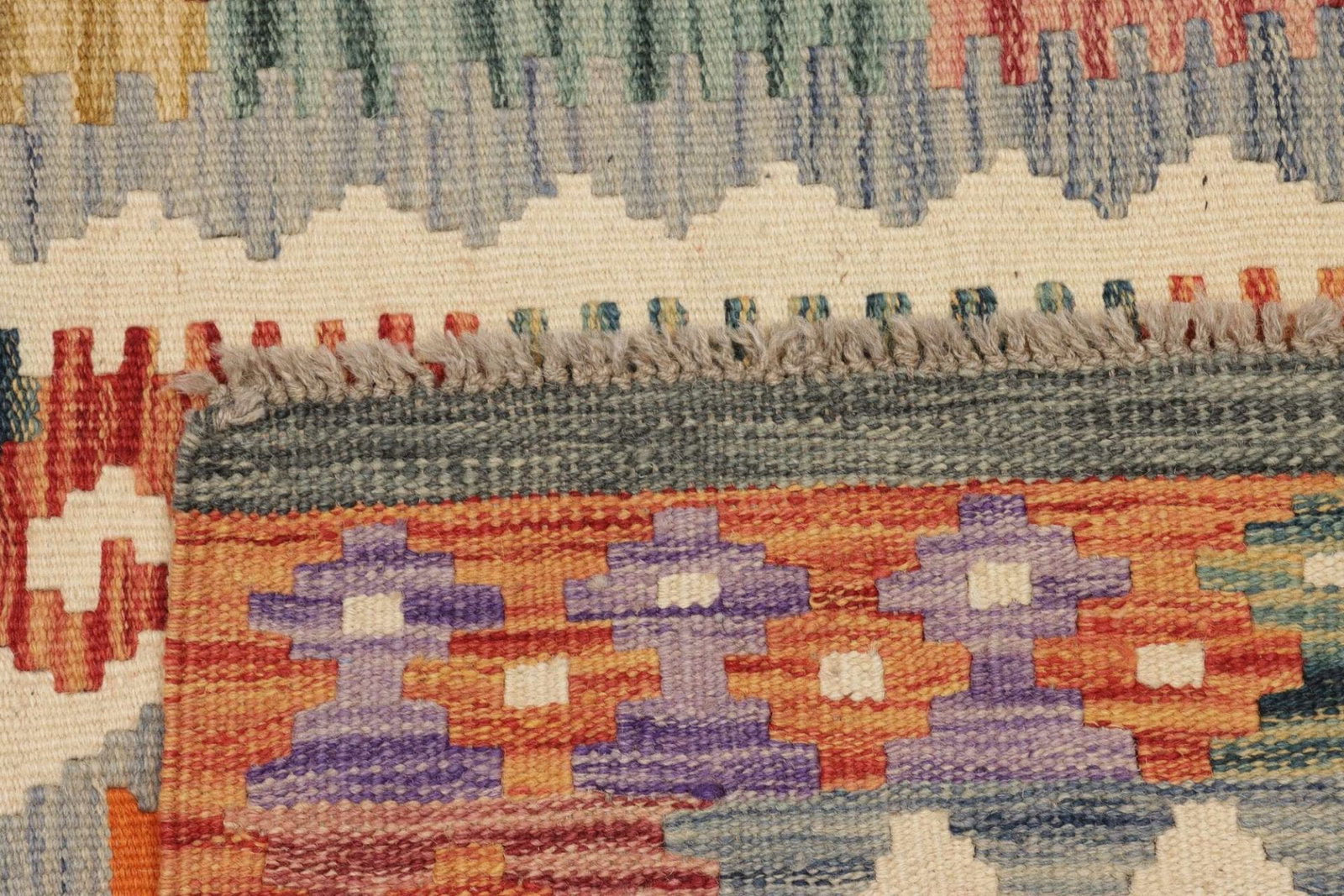 Ein wichtiger Aspekt dieses handgewebten Kelim Teppichs ist seine Umweltfreundlichkeit. Durch die Verwendung von natürlichen Materialen und traditioneller Handwerkstechnik wird jeder Teppich nachhaltig produziert. Darüber hinaus sind die Pflege und Wartung von Schurwolle einfach, was bedeutet, dass der Teppich eine lange Lebensdauer hat und durch regelmäßige Pflege seine Schönheit behält.