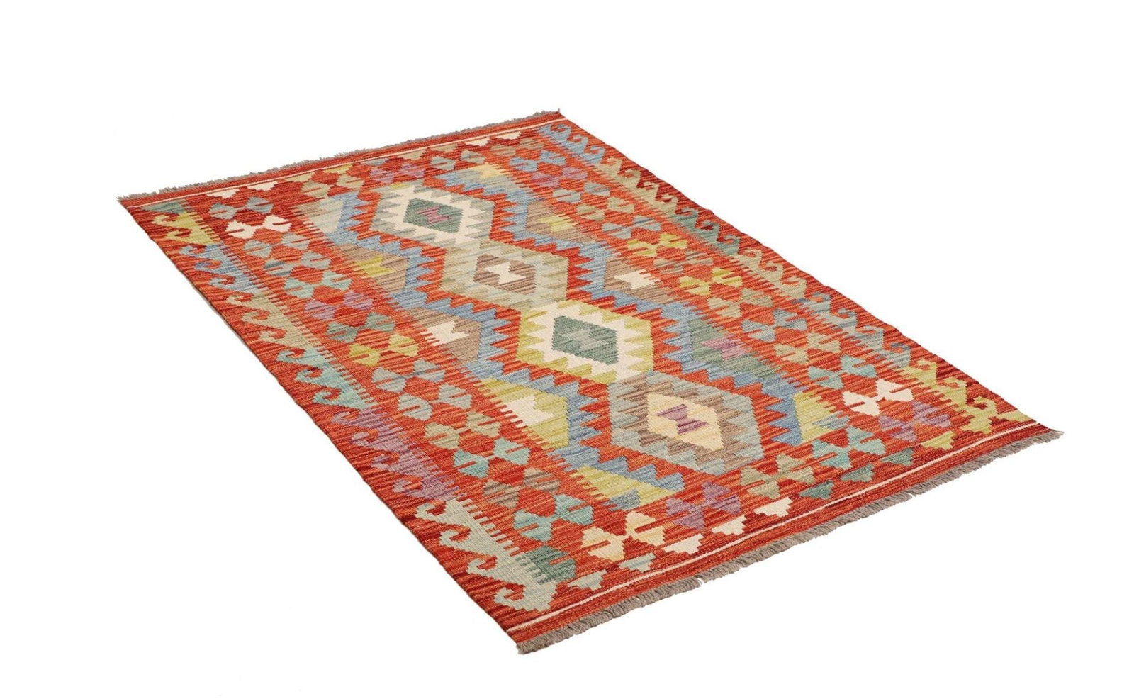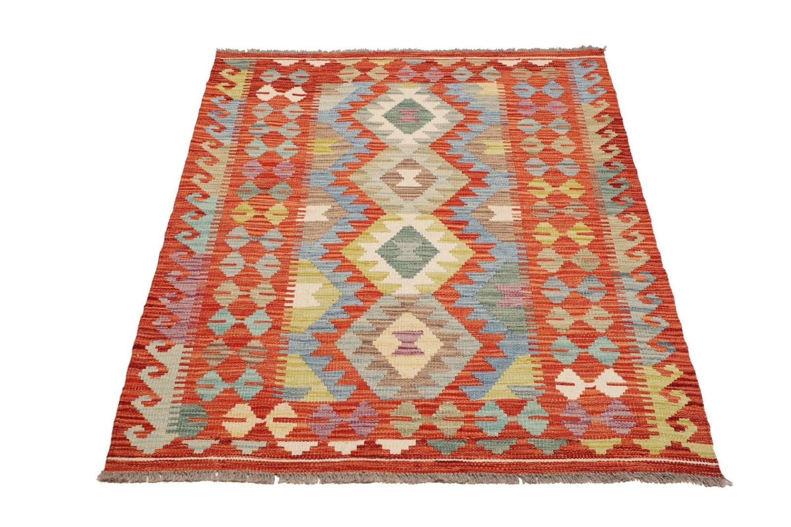 Kelim Teppich 105 x 149cm, Schurwolle, handgewebt, rustikaler Stil