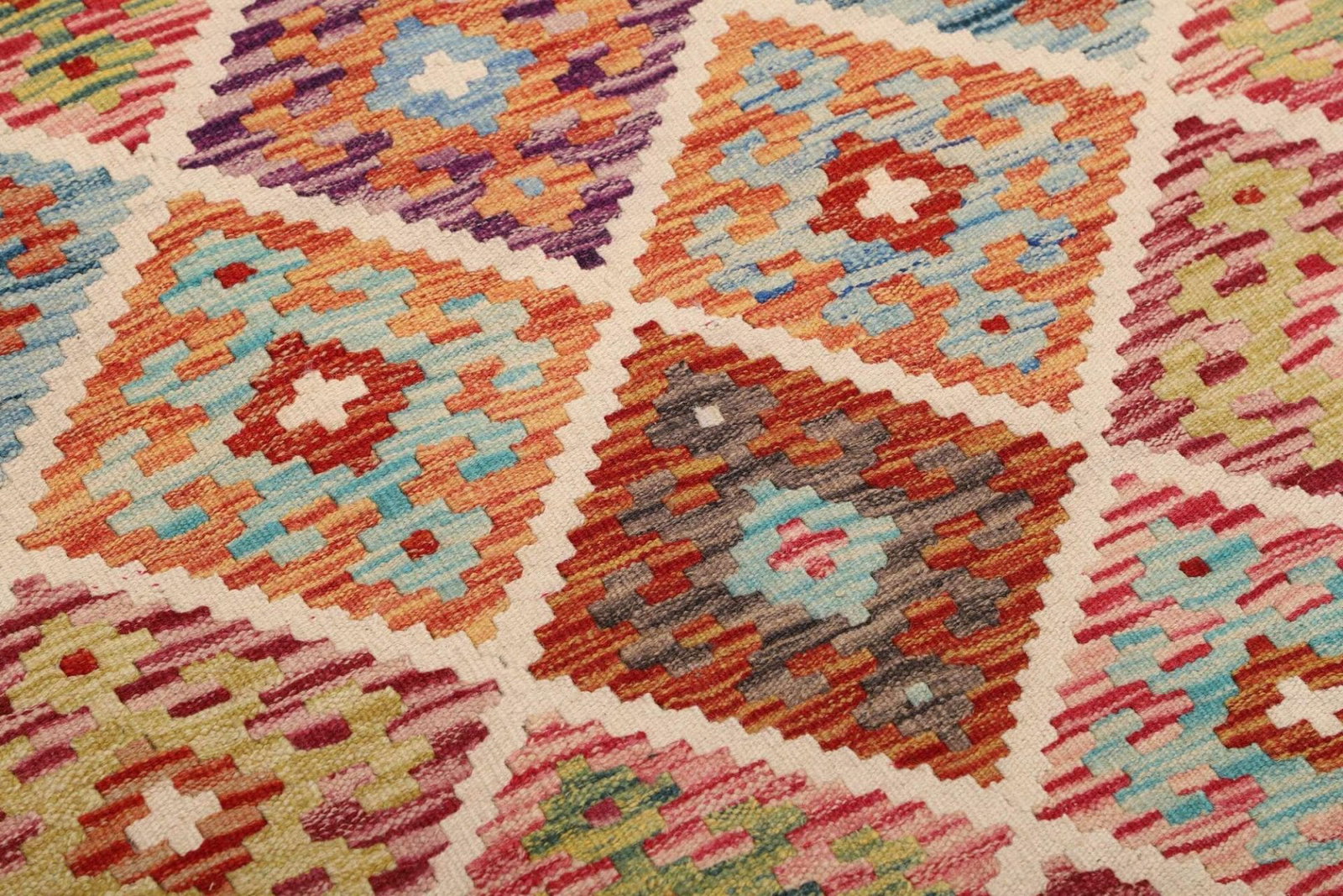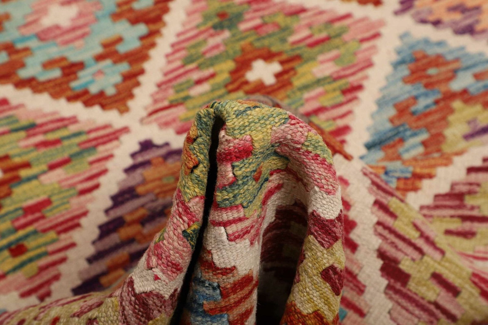 Ein weiterer Vorteil dieses Kelim Teppichs ist seine Vielseitigkeit. Er passt ideal in moderne, minimalistische Wohnstile ebenso wie in rustikale oder traditionelle Einrichtungsstile. Vor allem eignet sich dieser Teppich für Bereiche wie das Wohnzimmer, das Esszimmer oder sogar für Dielen, wo er sowohl Farbkleckse setzen als auch als gemütliche Unterlage dienen kann.