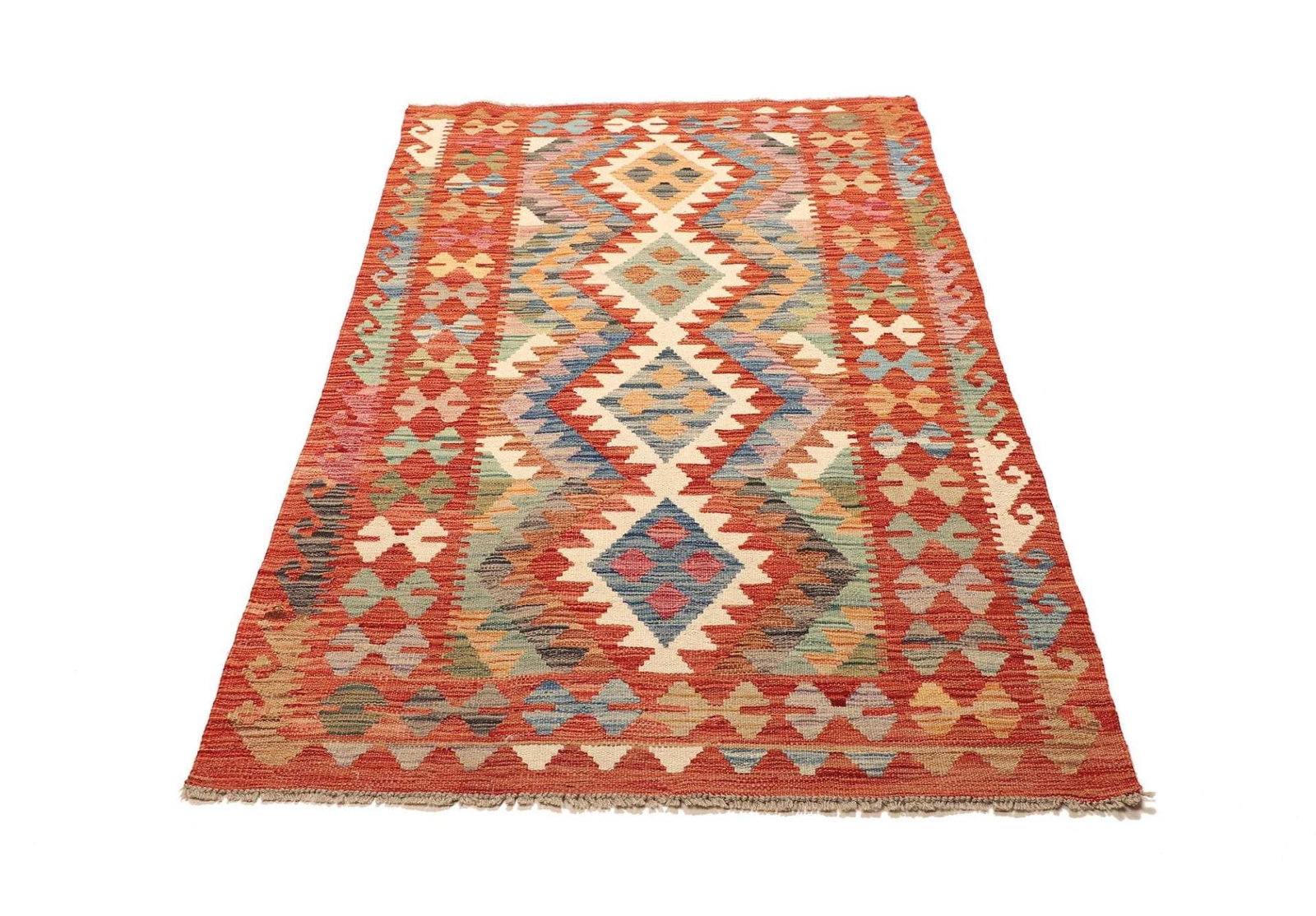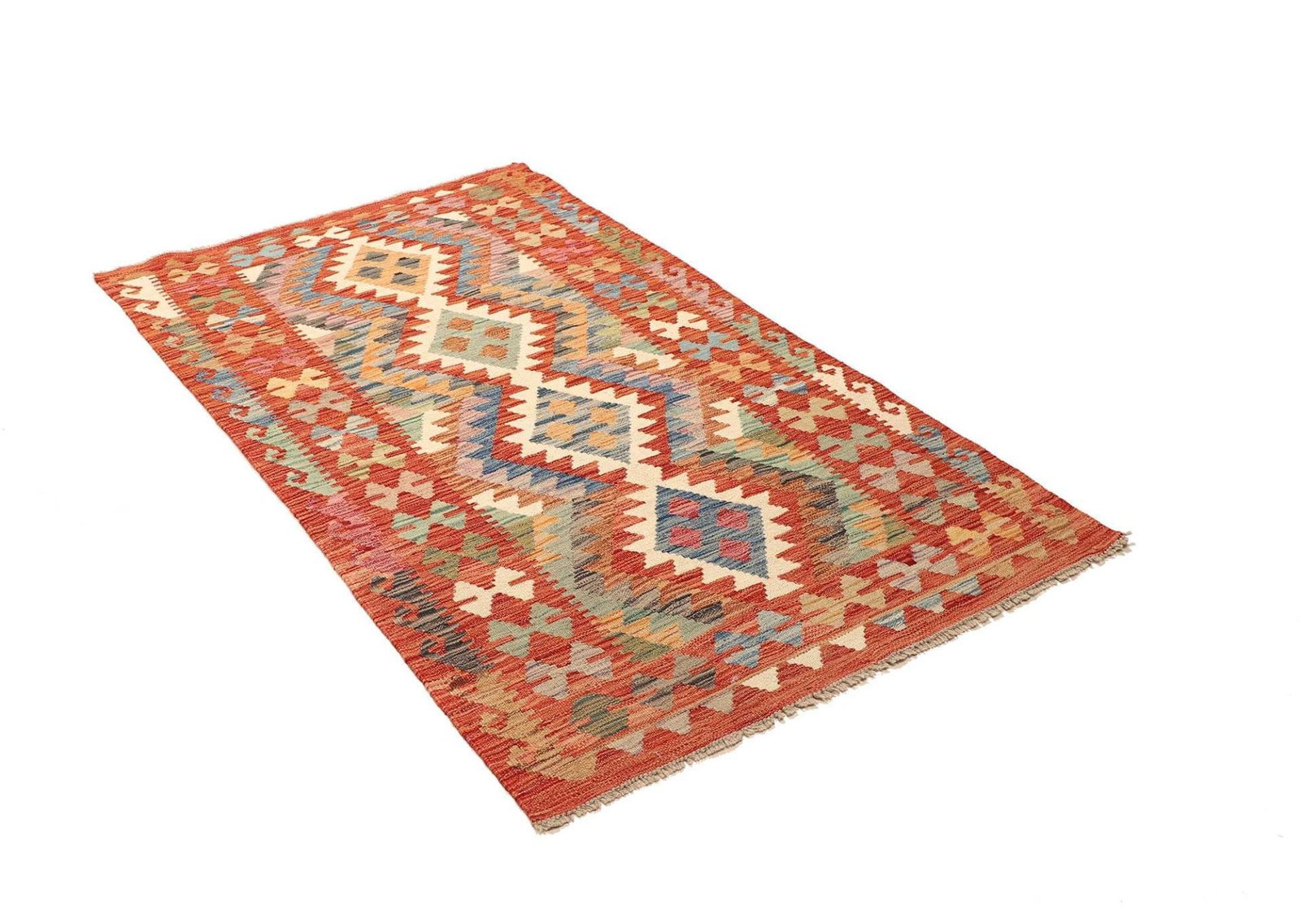 Kelim Teppich | Knotendichte: ca. 200.000 Knoten/m² | Material: 100% Schurwolle (Flor) und 100% Baumwolle (Kette) | Größe: 105 x 167 cm | Handgewebte Qualität | Herkunft: Pakistan | Höhe: ca. 5 mm | Rustikales Flair für moderne Wohnungen