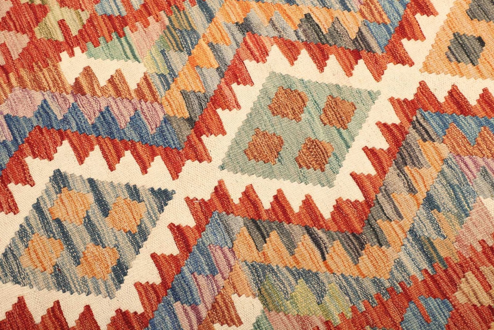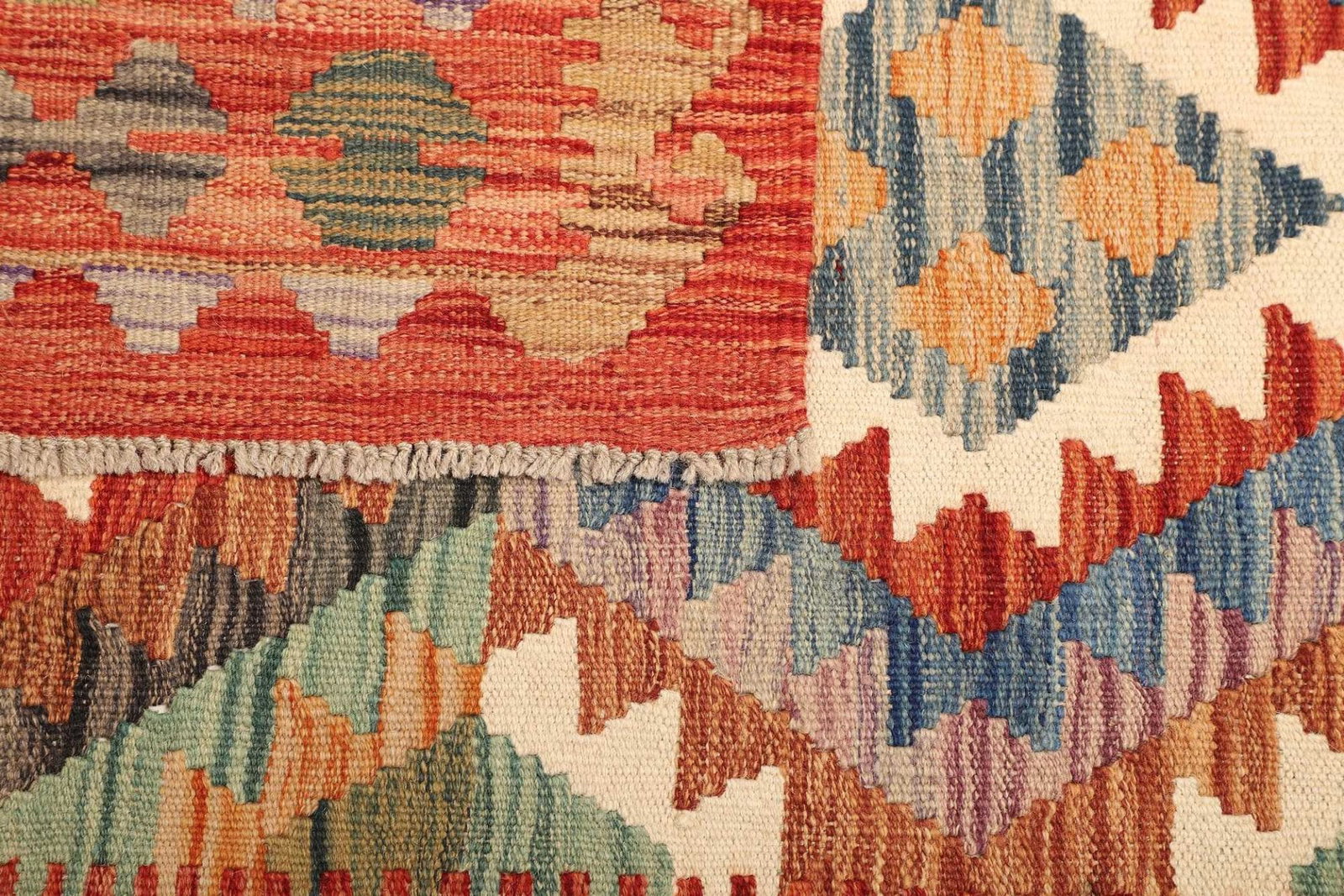 Kelim 215 x 144 cm – Handgewebt mit identischem Muster auf Vorder- und Rückseite – Orientteppich