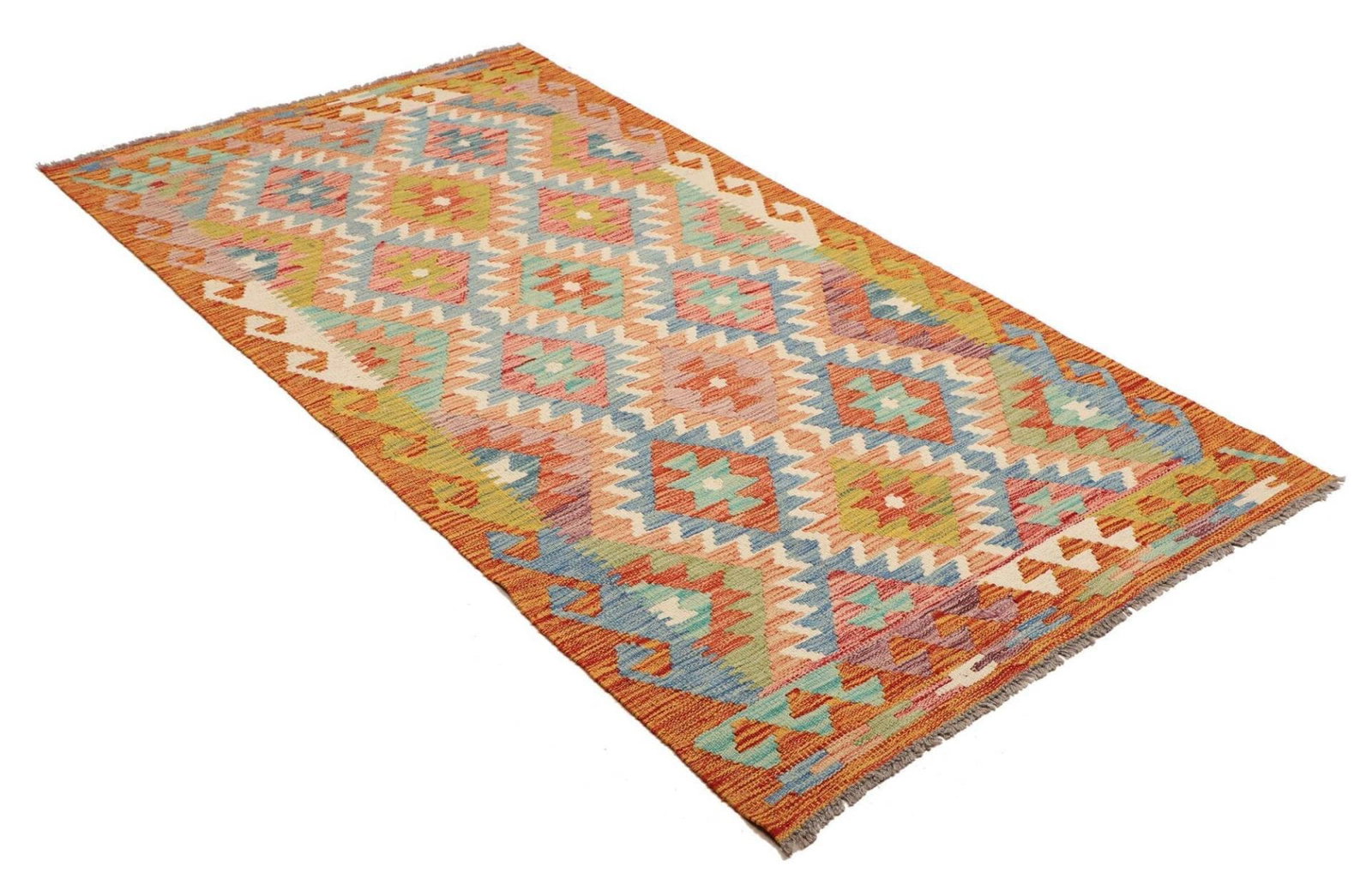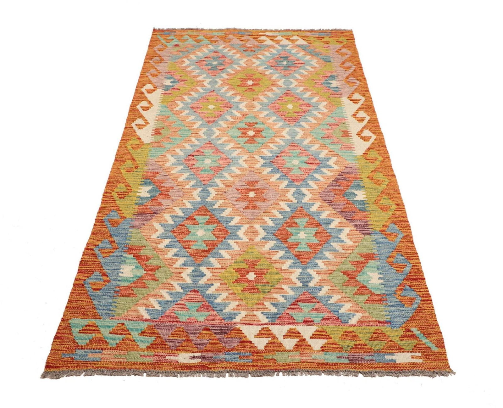 Kelim Teppich | Knotendichte: 200.000 Knoten/m² | Material: 100% Schurwolle | Größe: 105 x 201 cm | Herkunft: Pakistan | Verarbeitung: Handgewebt | Florhöhe: ca. 5 mm | Rustikales Flair für moderne Einrichtungen