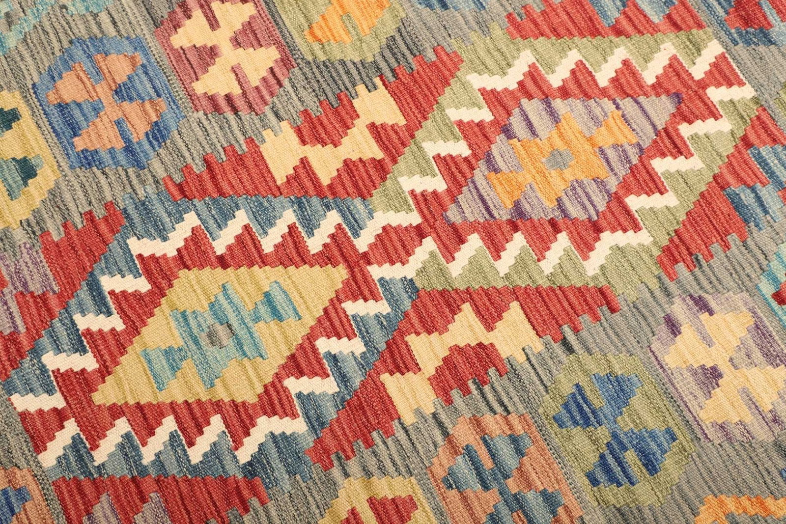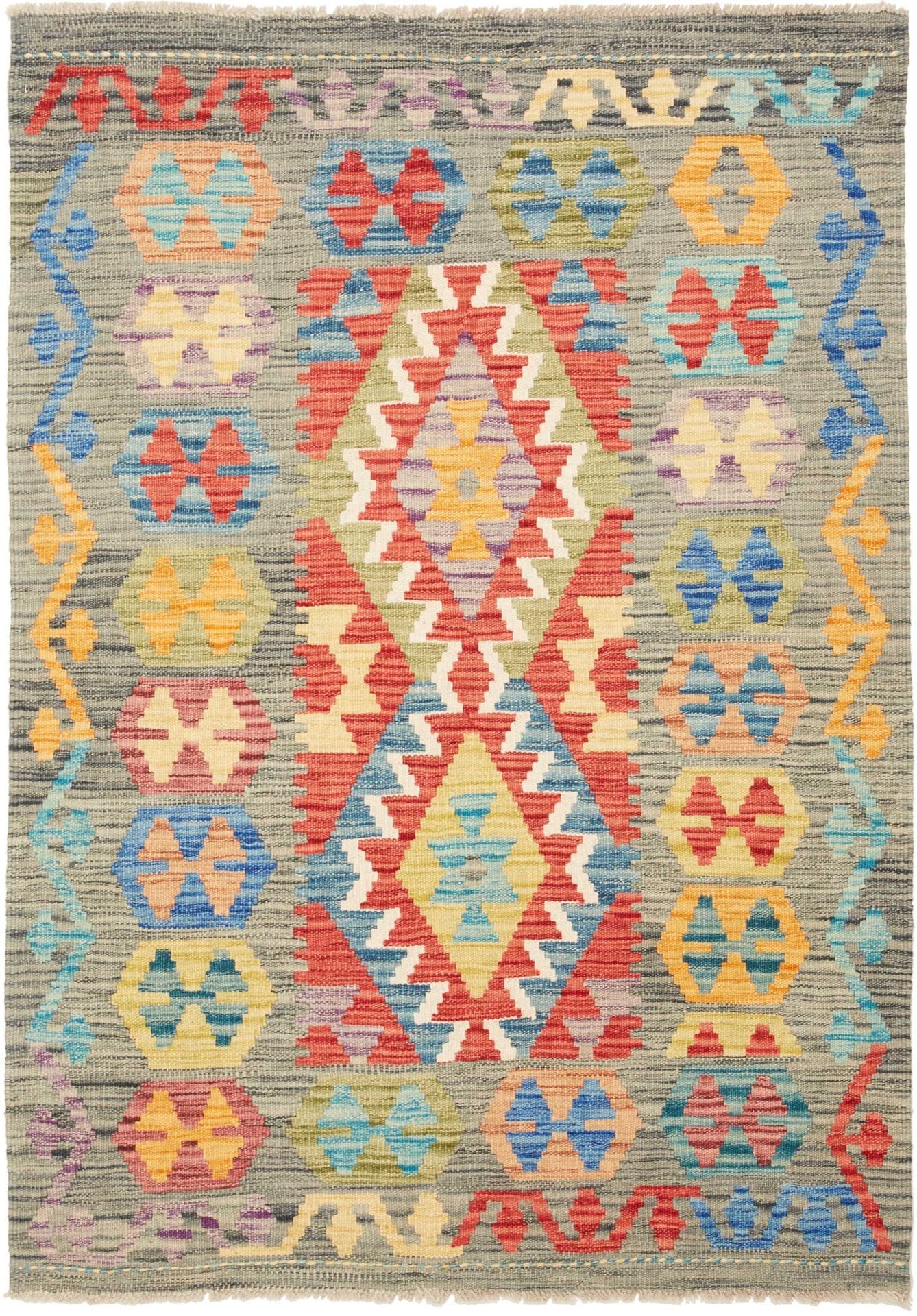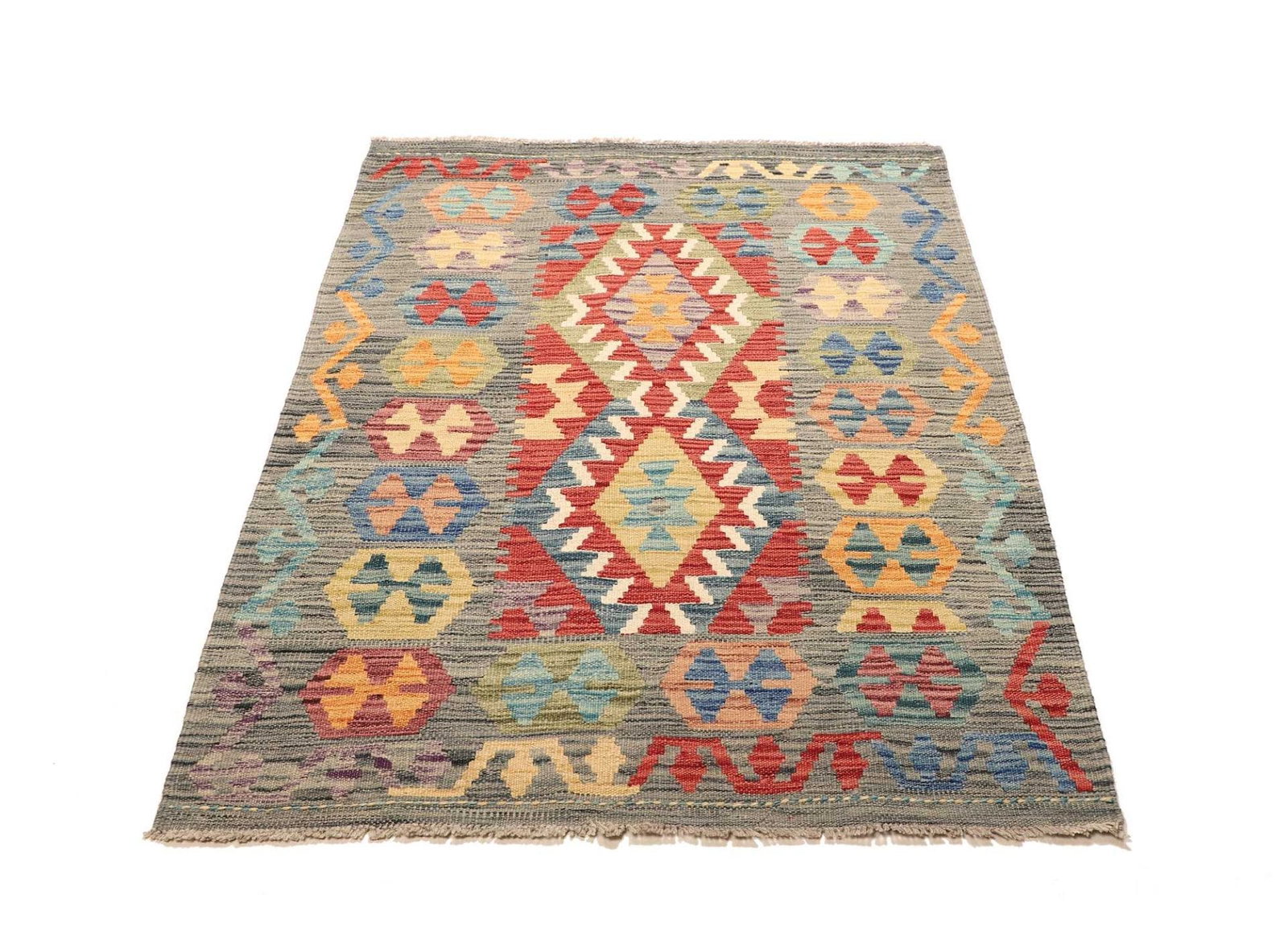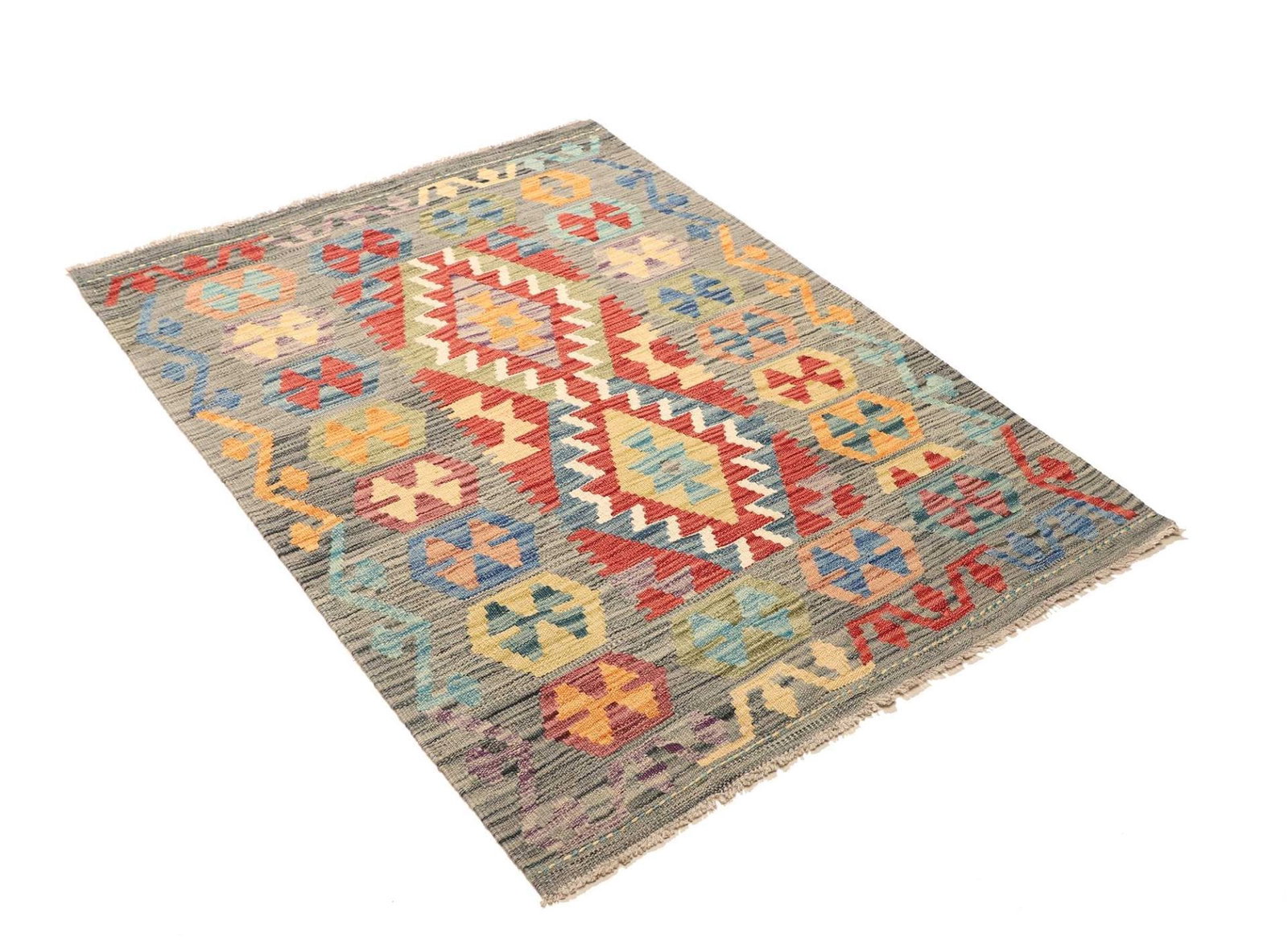 Handgewebter Kelim | Knotendichte: ca. 200.000 Knoten/m² | Material: 100% Schurwolle (Flor), 100% Baumwolle (Kette) | Größe: 106 x 147 cm | Herkunft: Pakistan | Zustand: Sehr gut | Rustikales Flair für moderne Wohnräume