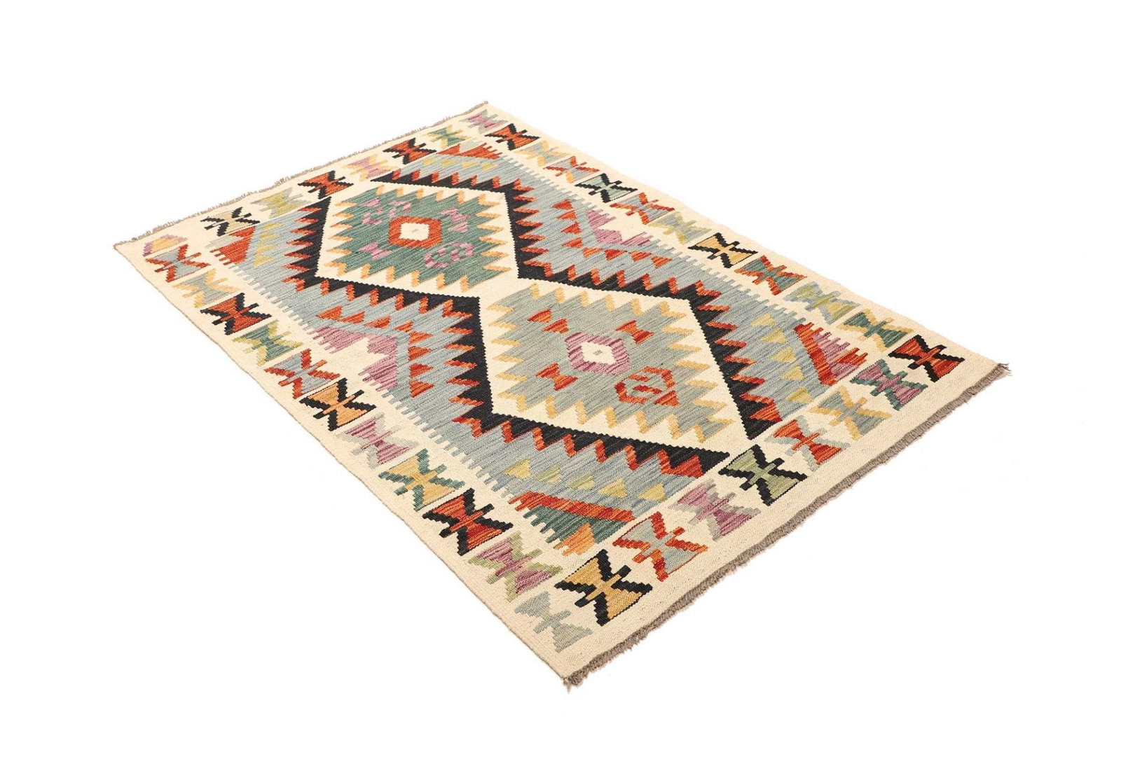 Kelim Teppich 106 x 148cm aus Schurwolle, handgewebt, rustikal