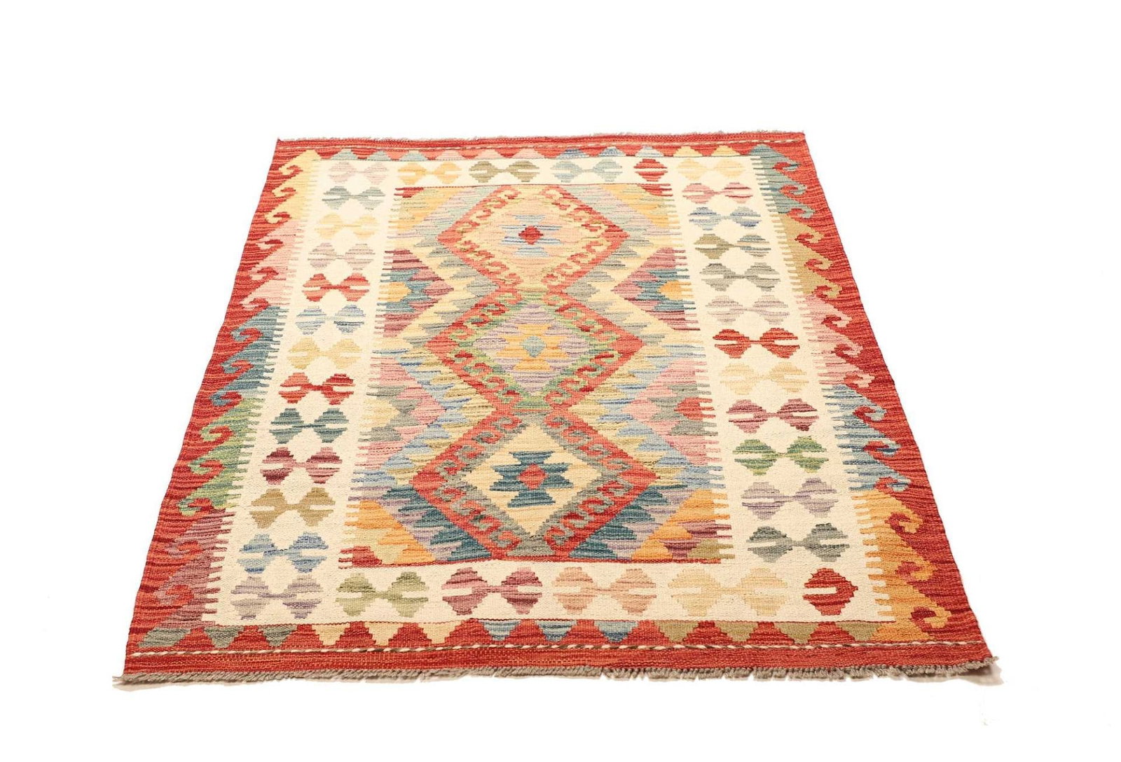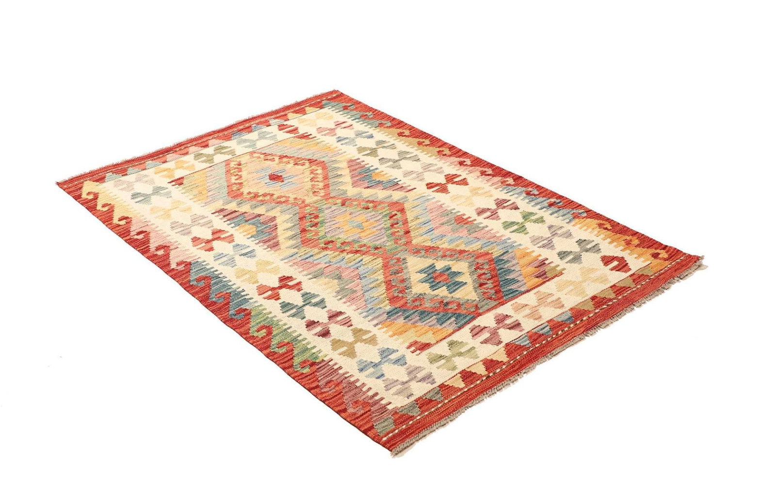 Kelim Teppich 106 x 150cm aus Schurwolle, handgewebt, rustikal