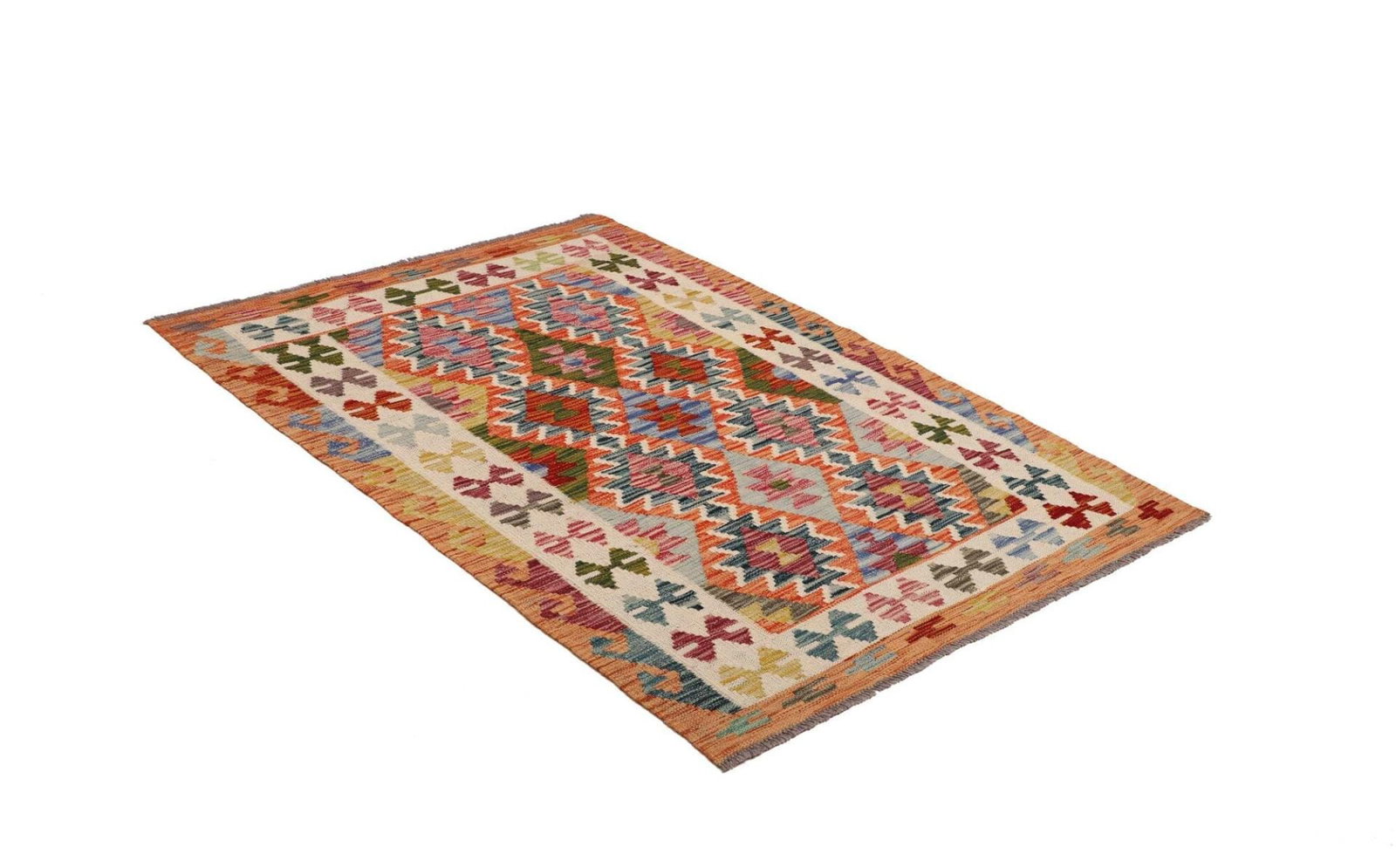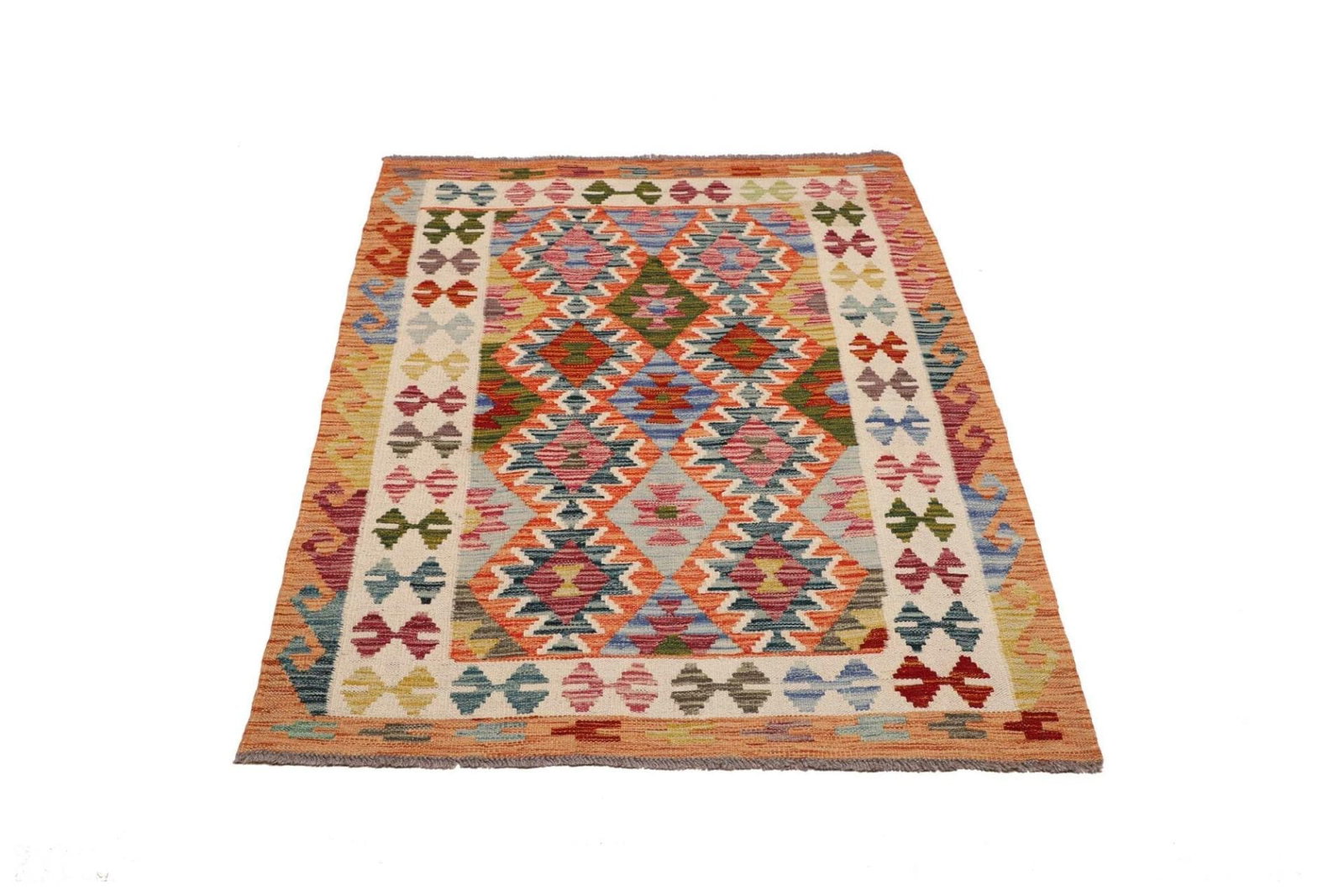 Kelim Teppich | Knotendichte: ca. 200.000 Knoten/m² | Material: 100% Schurwolle und 100% Baumwolle | Größe: 106×150 cm | Handgewebte Qualität | Herkunft: Pakistan | Florhöhe: ca. 5 mm | Vielseitig verwendbar und mit rustikalem Flair
