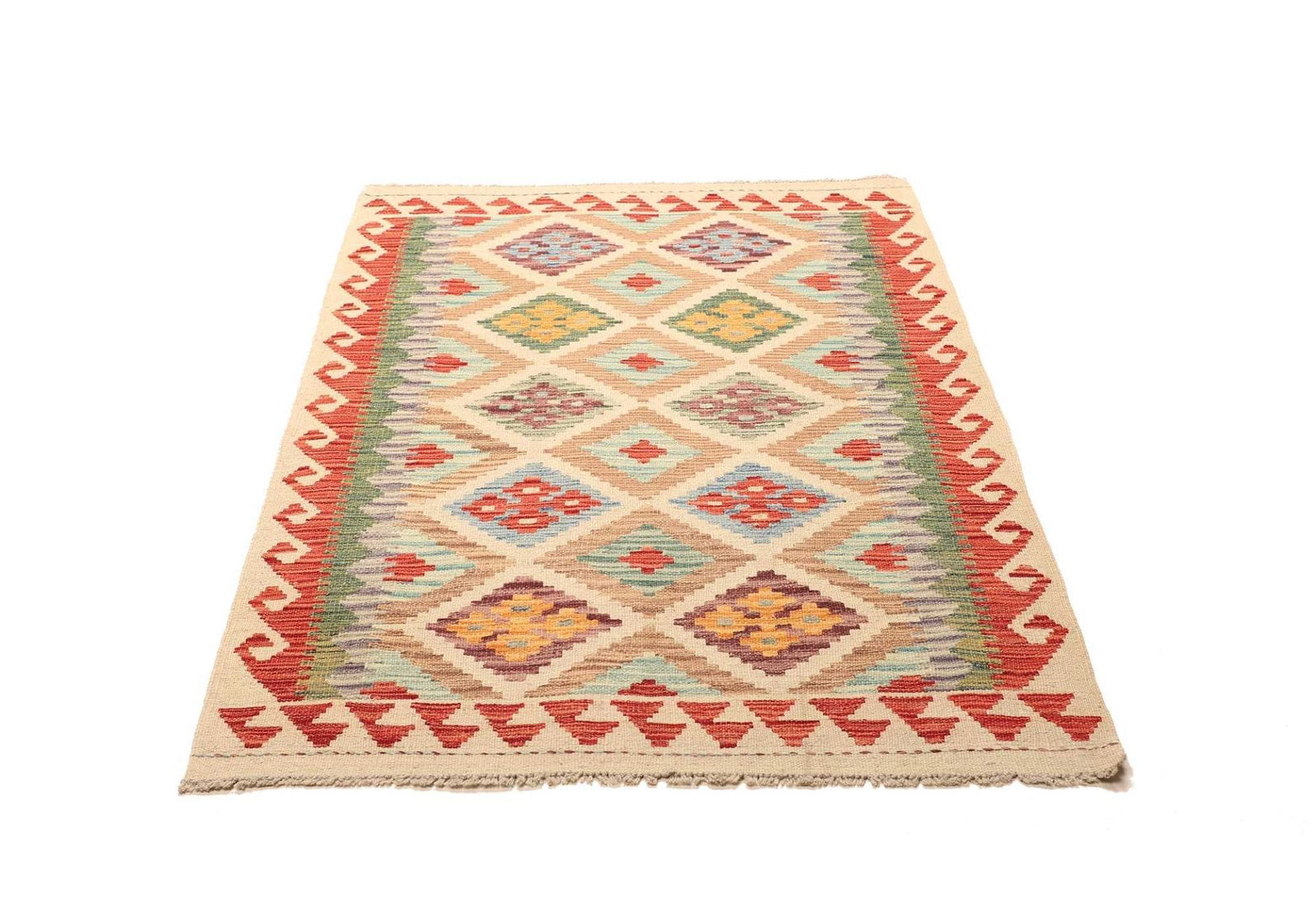 Kelim Teppich 106 x 153cm aus Schurwolle, handgewebt, rustikal
