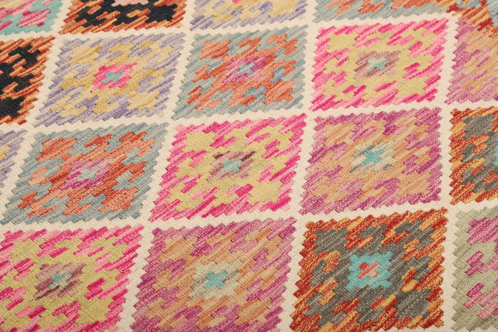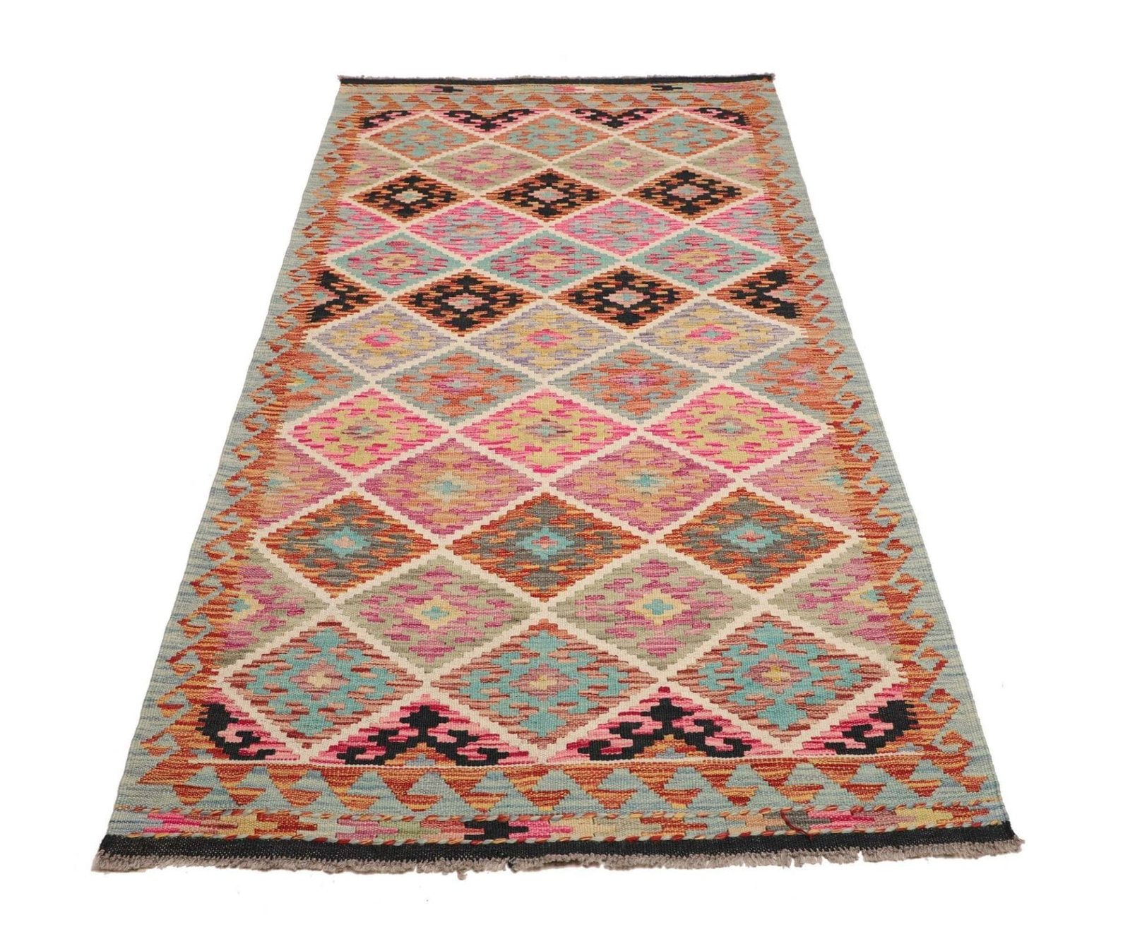 Kelim Teppich | Knotendichte: ca. 200.000 Knoten/m² | Material: 100% Schurwolle (Flor), 100% Baumwolle (Kette) | Größe: 106 x 202 cm | Handgewebte Qualität | Herkunft: Pakistan | Höhe: ca. 5mm | Besonders geeignet für moderne und rustikale Einrichtungsstile