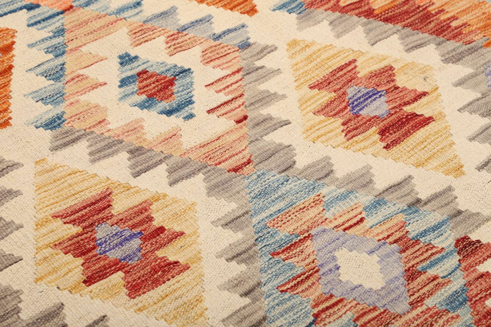 Der Kelim Teppich zeichnet sich durch seine handgewebte Technik aus, die ihn besonders strapazierfähig und gleichzeitig anmutig macht. Hergestellt aus reiner Wolle, bietet er eine weiche Oberfläche, die angenehm zu gehen ist, während die natürlichen Fasern für eine lange Lebensdauer sorgen. Wolle hat zudem eine hervorragende Wärmeisolation, was den Teppich zu einer ausgezeichneten Wahl für jede Jahreszeit macht. Durch die handwerkliche Herstellung sind keine Maschinen beteiligt, was jedem Teppich eine individuelle Note verleiht und ihn zu einem Unikat in Ihrem Zuhause macht.