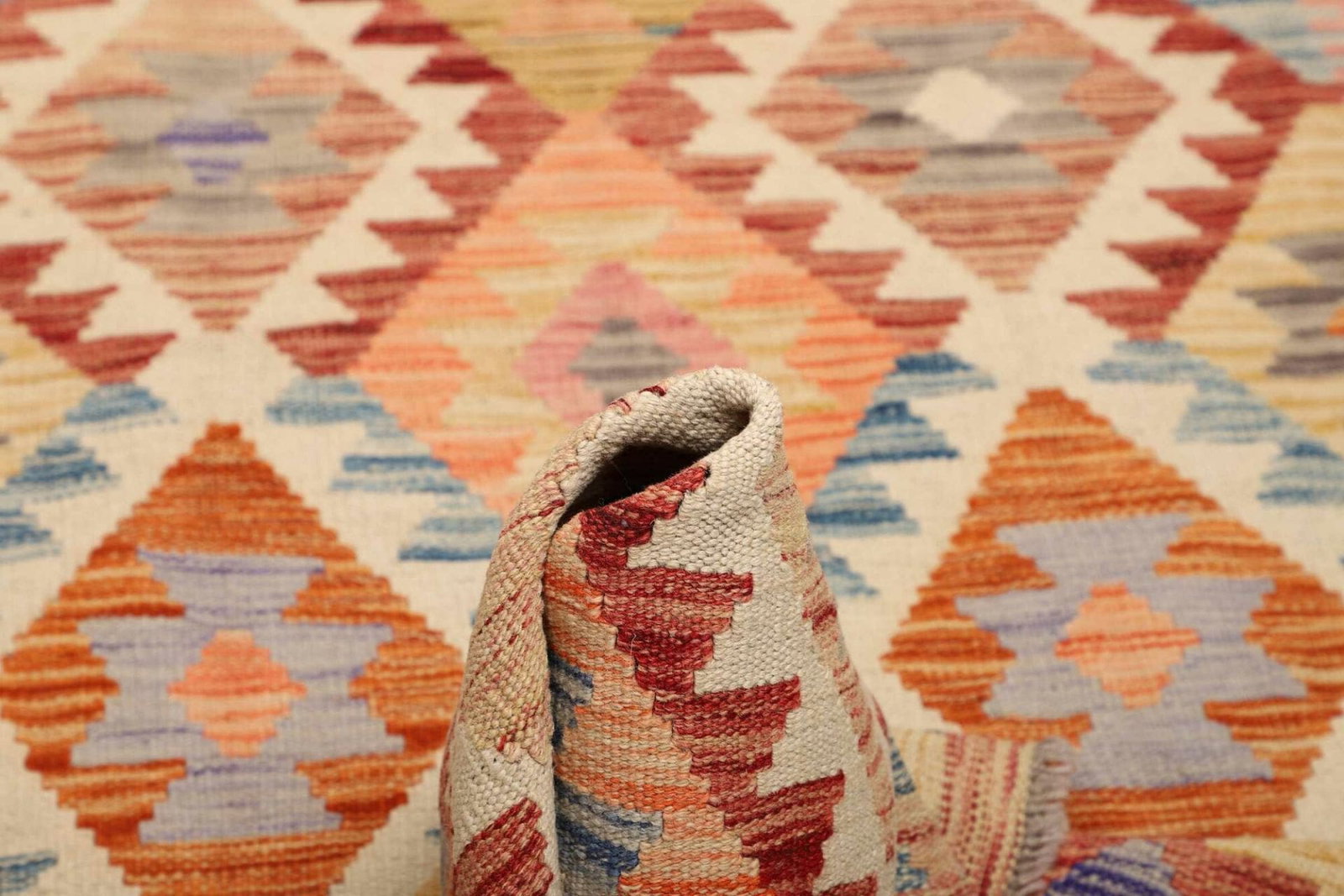 Ein weiterer Vorteil des handgewebten Kelim Teppichs ist seine Vielseitigkeit. Er eignet sich hervorragend für Wohnräume, Schlafzimmer oder Flure und harmoniert mit verschiedenen Einrichtungselementen. Egal, ob als Blickfang in einem minimalistischen Raum oder zur Ergänzung eines traditionell eingerichteten Zimmers – der Teppich findet überall seinen Platz. Zudem ist ein Kelim Teppich in der Regel pflegeleicht; durch regelmäßiges Ausklopfen und gelegentliches Reinigen behält er seine strahlenden Farben und die attraktive Textur. Diese Eigenschaft macht ihn zu einer praktischen Wahl für Familien mit Kindern oder Haustieren.