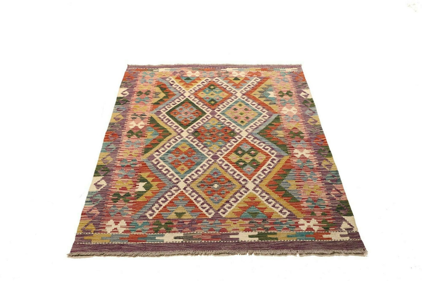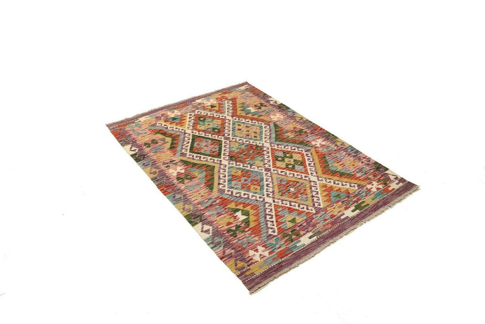 Kelim Teppich 107 x 140 cm aus Schurwolle, handgewebt, rustikal